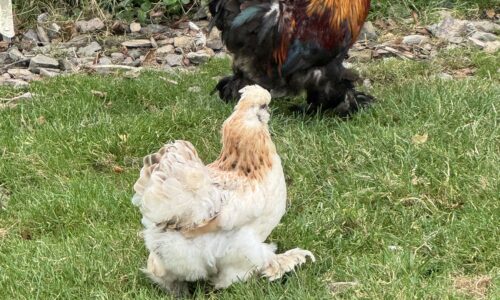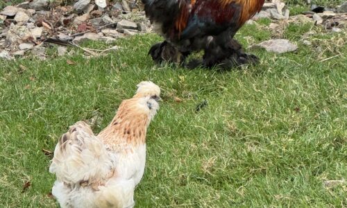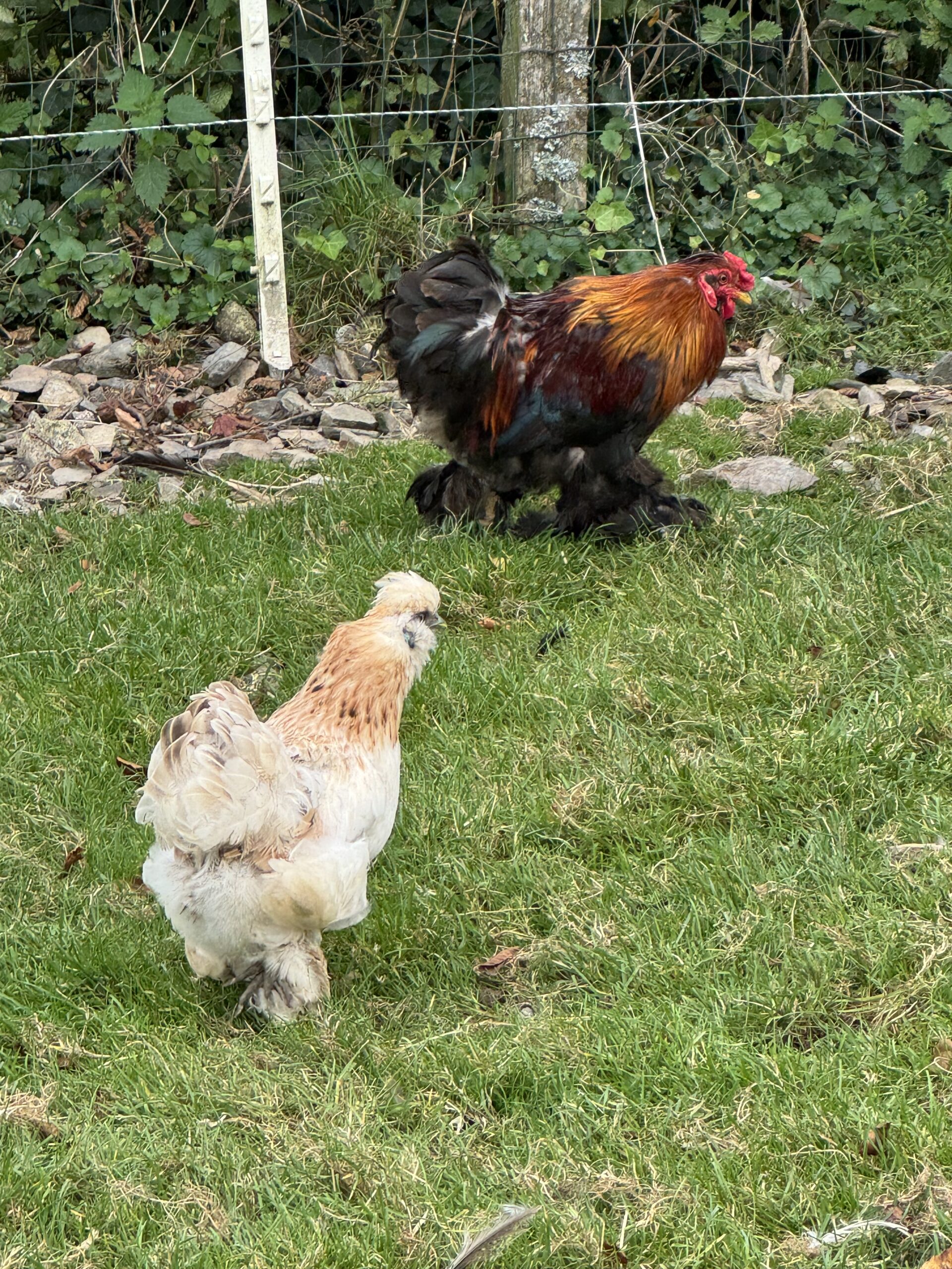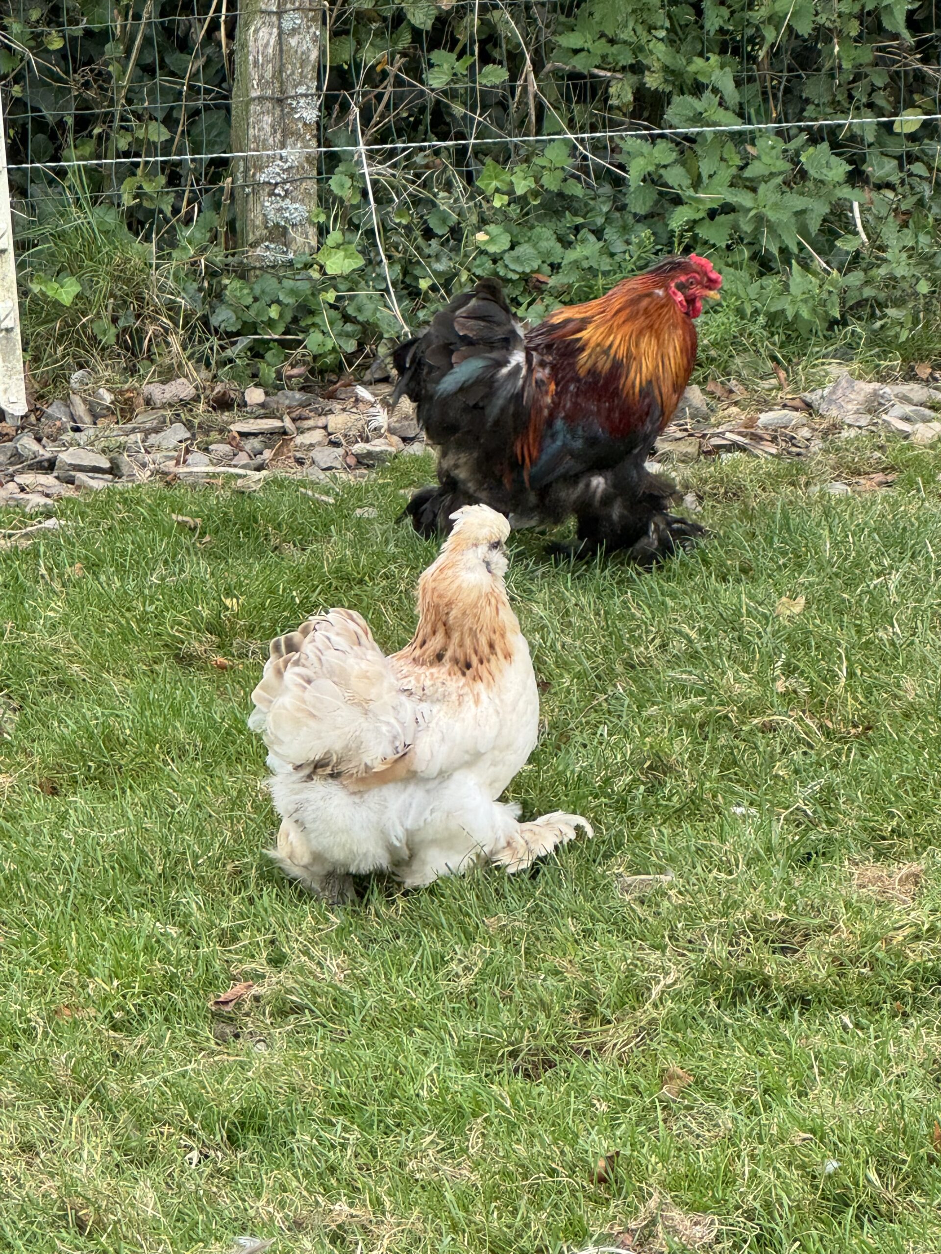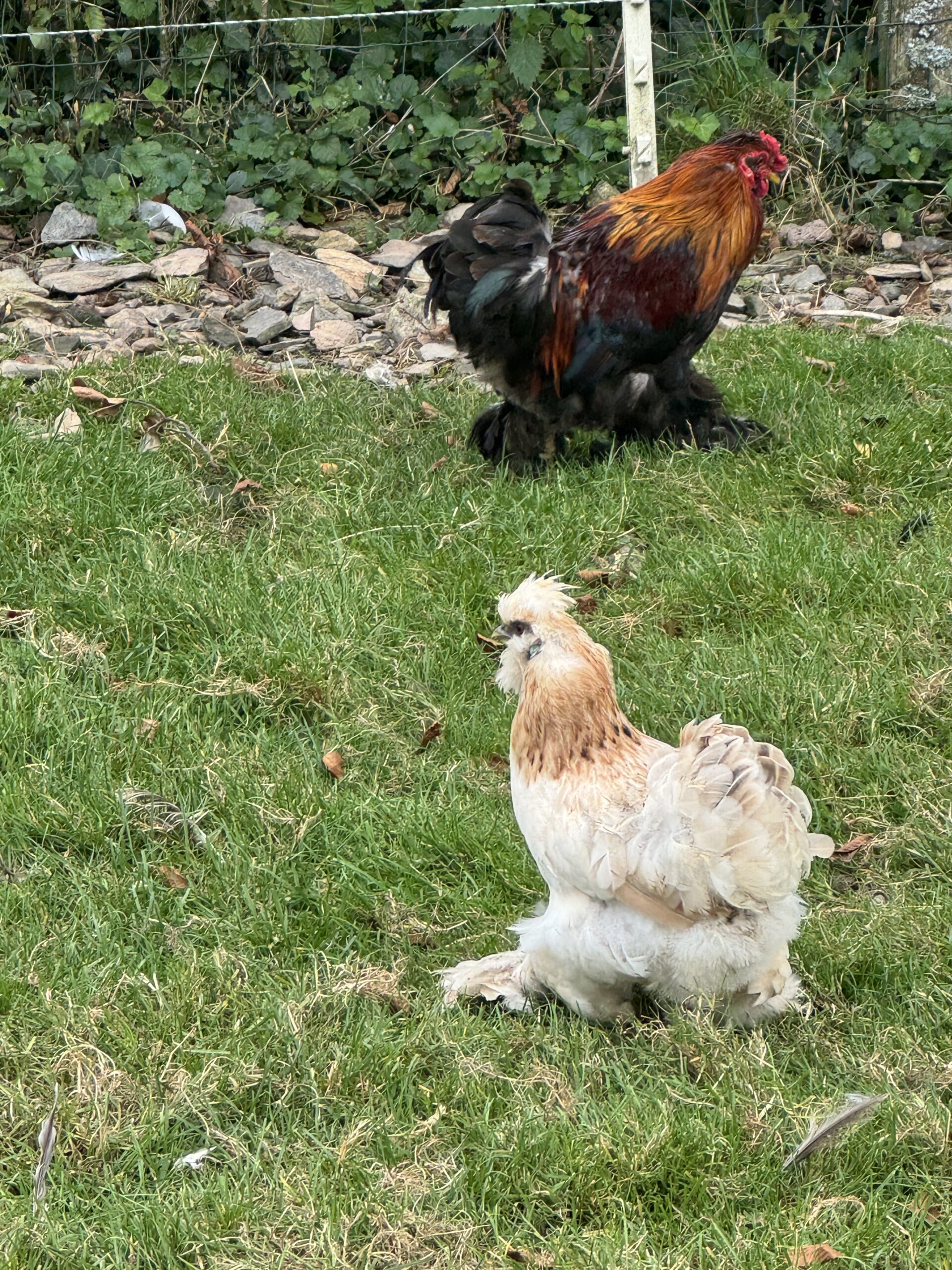 je vend 1 beau petit coq et 2poules nains croisés bantam de Pékin et neigre soie né en 2024