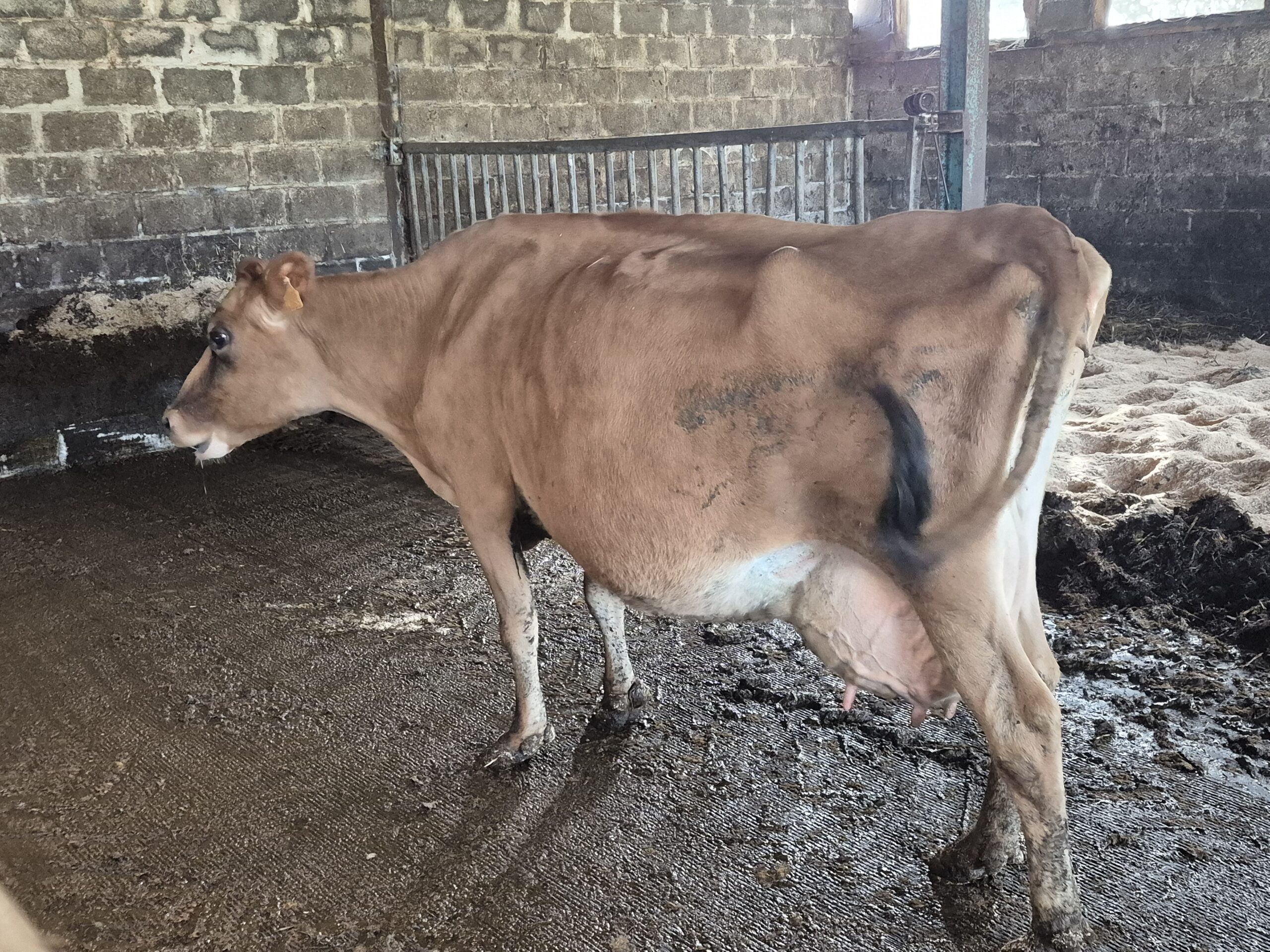 A vendre vache Jersey inscrite née le 04/02/2021 de Steve x une importée du Danemark. Vélée le 251224 et inséminée de BBG Elk 234 en juillet 2025. Confirmée pleine. Traite en salle de traite puis robot. Convertie en nourrice,