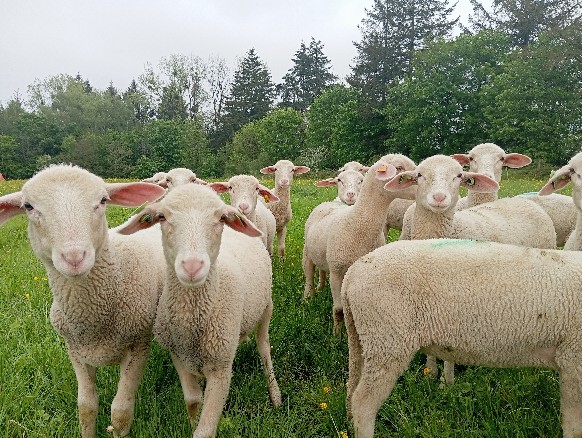 Agneaux 100% Lacaune nés entre fin janvier et fin février, sevrés.