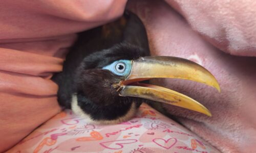 Jeune Araçari Pteroglossus Castanotis (de la famille des Toucans, taille moyenne) de 9 semaines, Élevé à la main depuis mes 15 jours