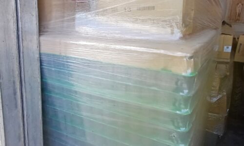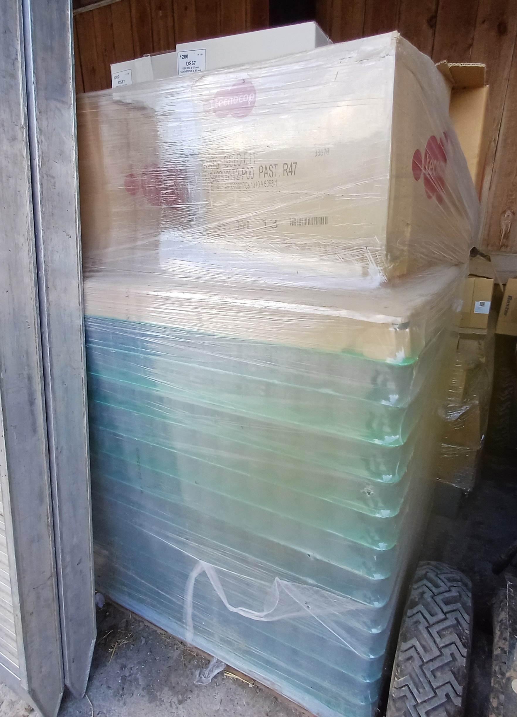 1 palette pleine non ouverte + l’équivalent de 3/4 de palette disponible en pots rangés dans des cartons.