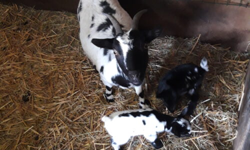 Bonjour disponible de suite chevre de deux ans et ses 2 petit ( petite femelle noir et mâle bicolore) l allaitement se passe sans souci vendue pour cause de perte d une prairie au printemps, visible region 6180 possibles de les livrer après être venu les voir et laisser un accompte plus d info par message