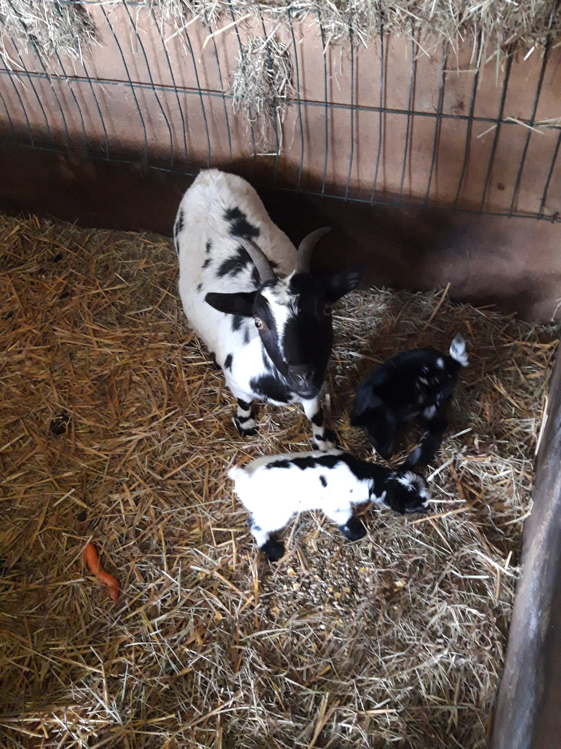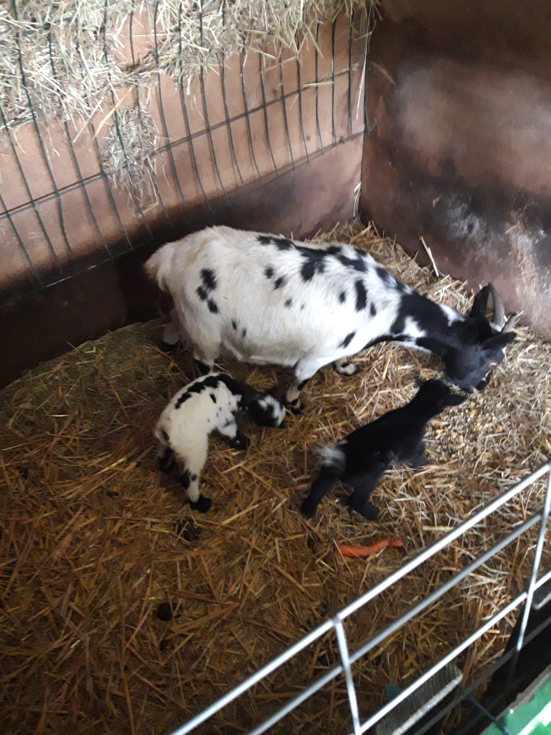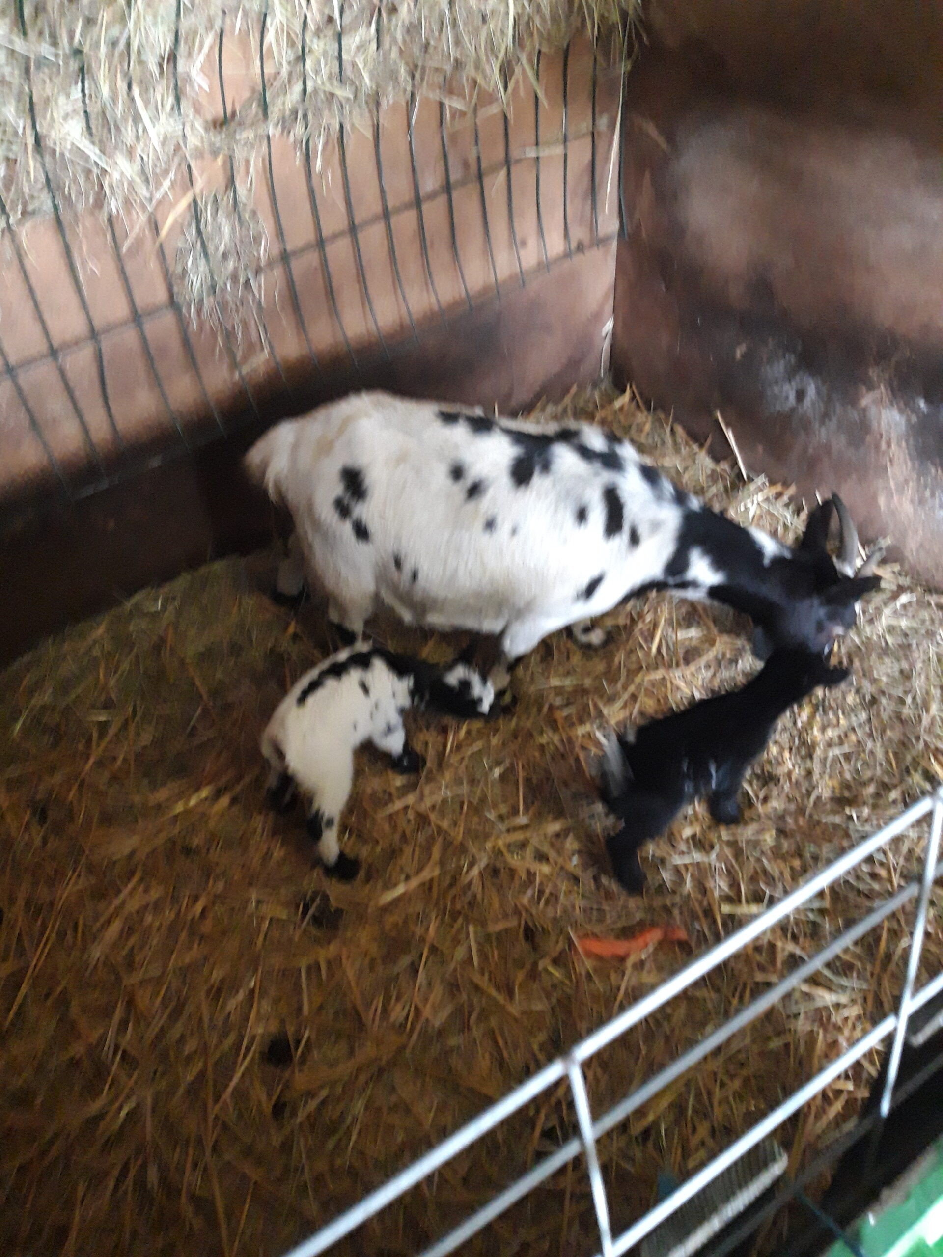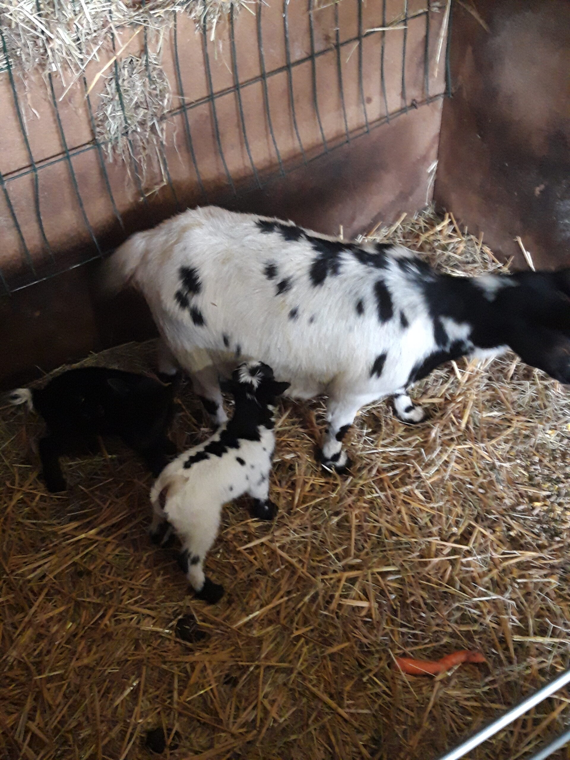 Bonjour disponible de suite chevre de deux ans et ses 2 petit ( petite femelle noir et mâle bicolore) l allaitement se passe sans souci vendue pour cause de perte d une prairie au printemps, visible region 6180 possibles de les livrer après être venu les voir et laisser un accompte plus d info par message