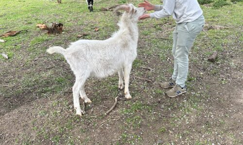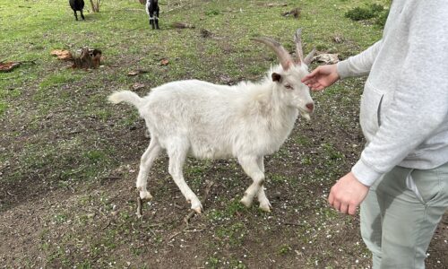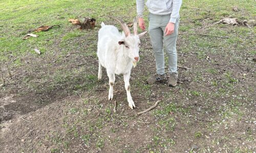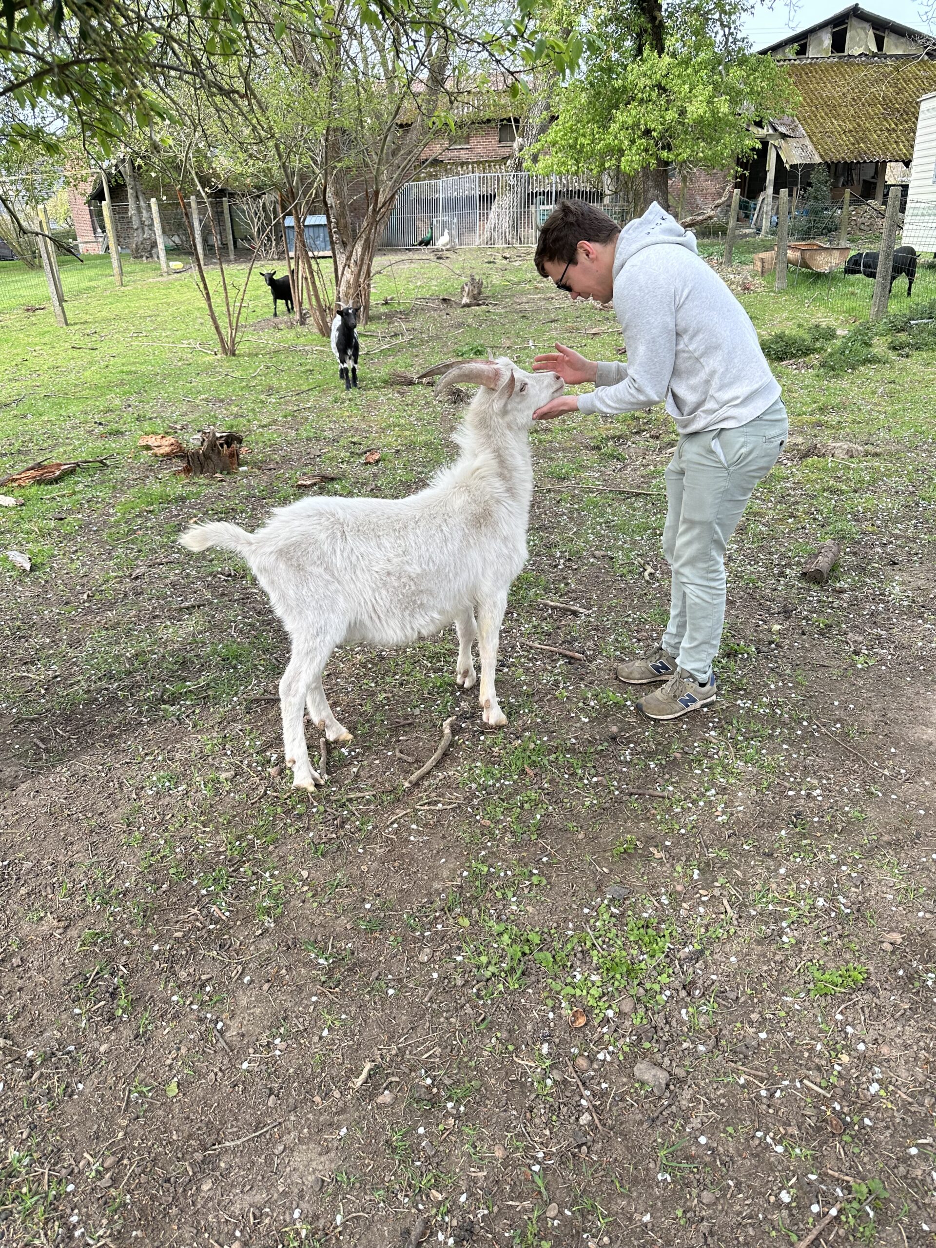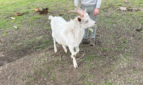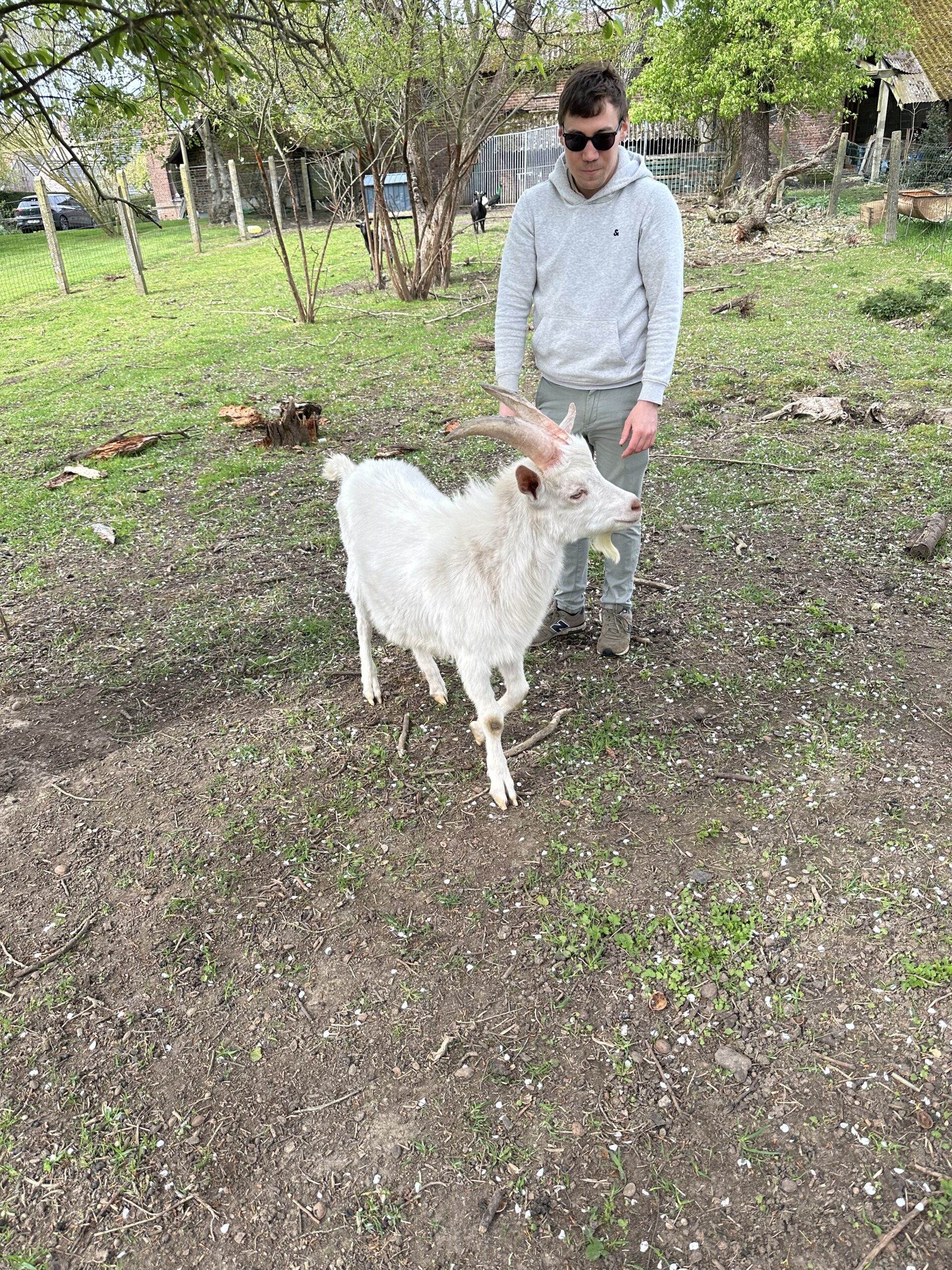 Jeune bouc non castré, très sociable , proches des enfants, n’a pas peur des des autres animaux ( chiens, chats, poules, moutons )