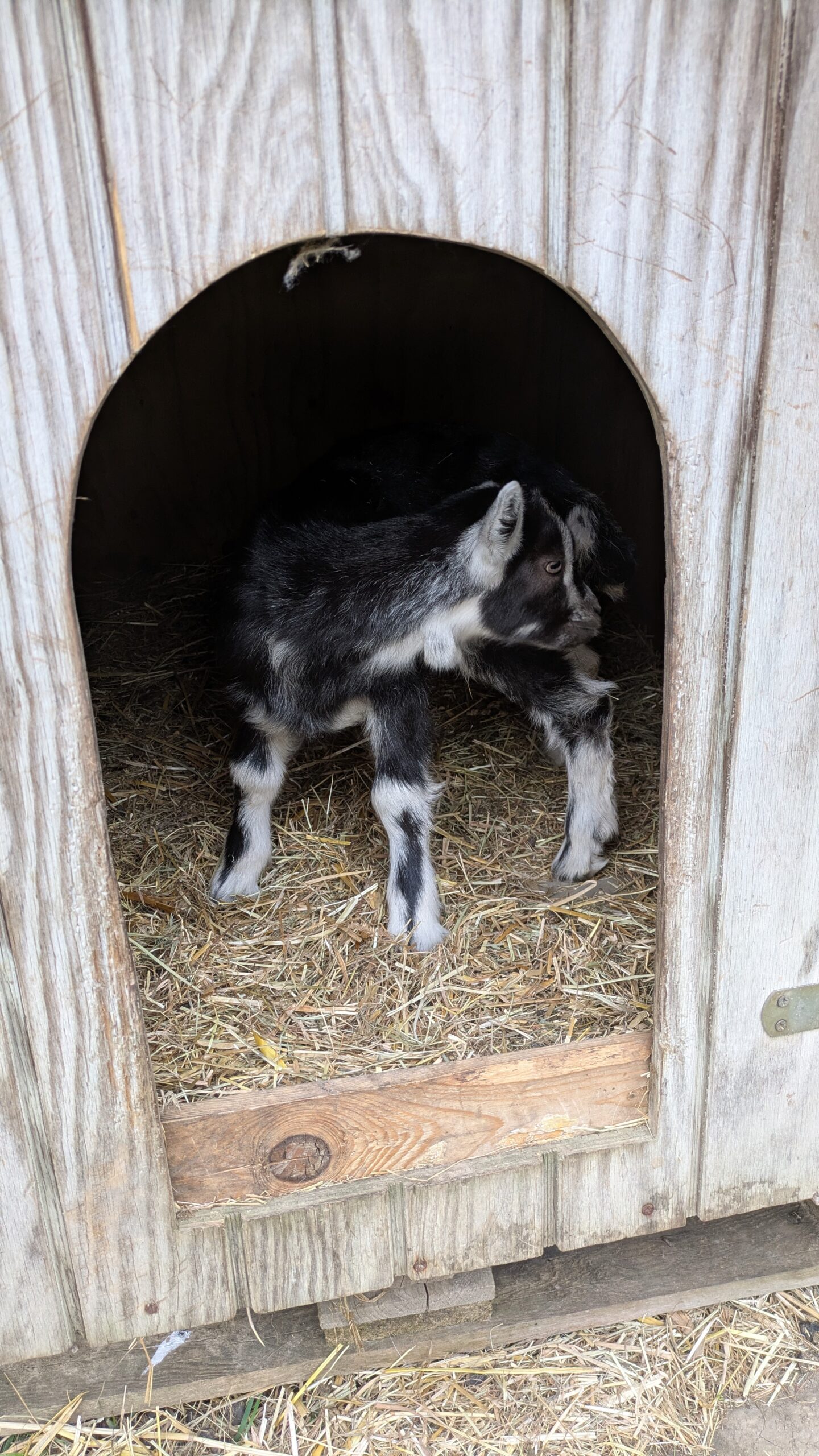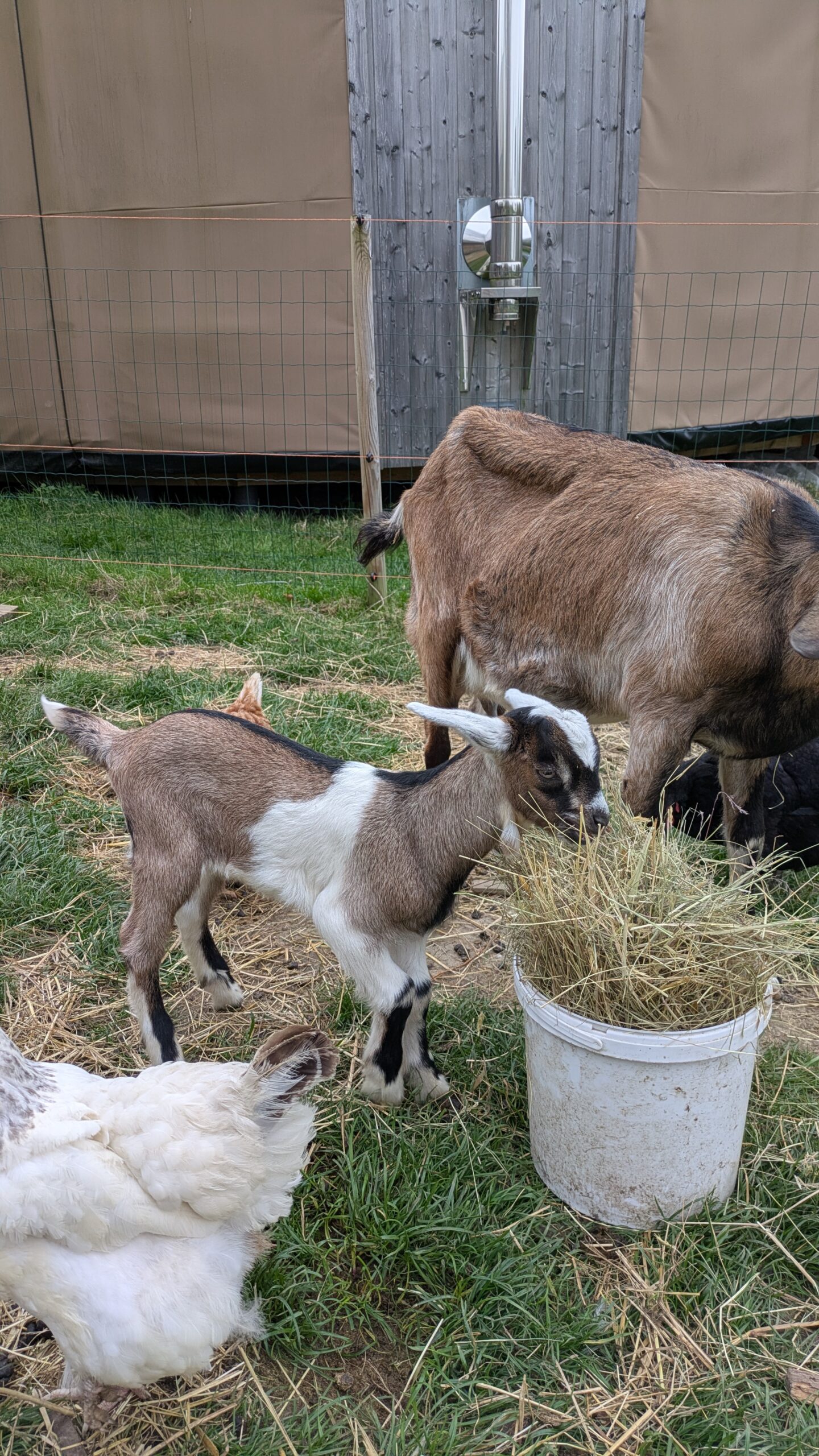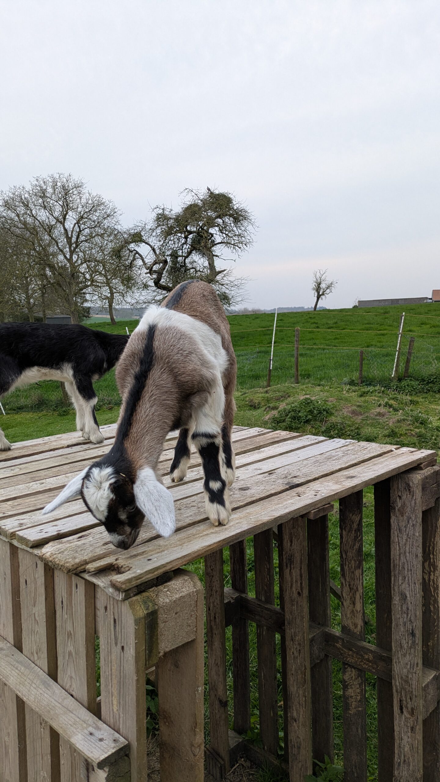 Chevreau de race laitière né mi-mars et élevé sous la mère. Soit le foncé (croisé saanen-poitevine) soit le tacheté (croisé saanen-poitevine-anglonubien).