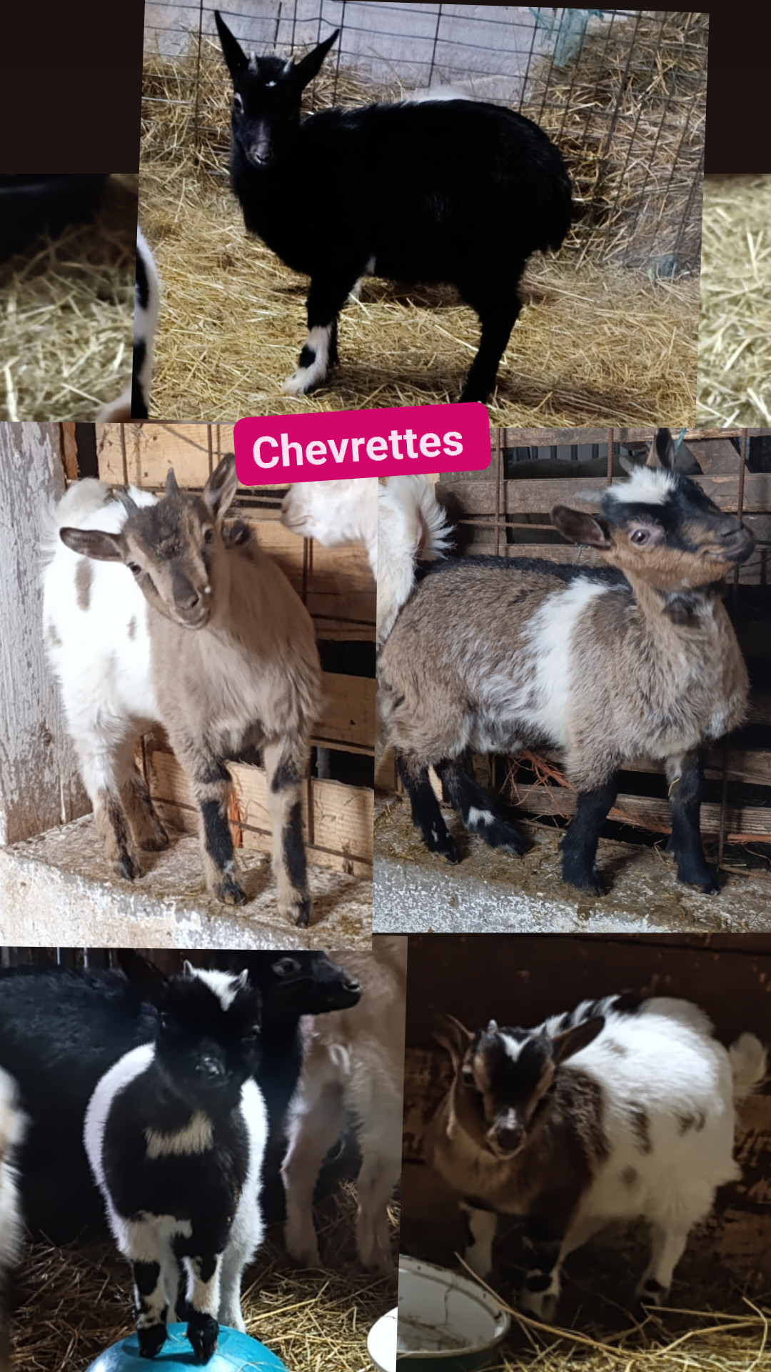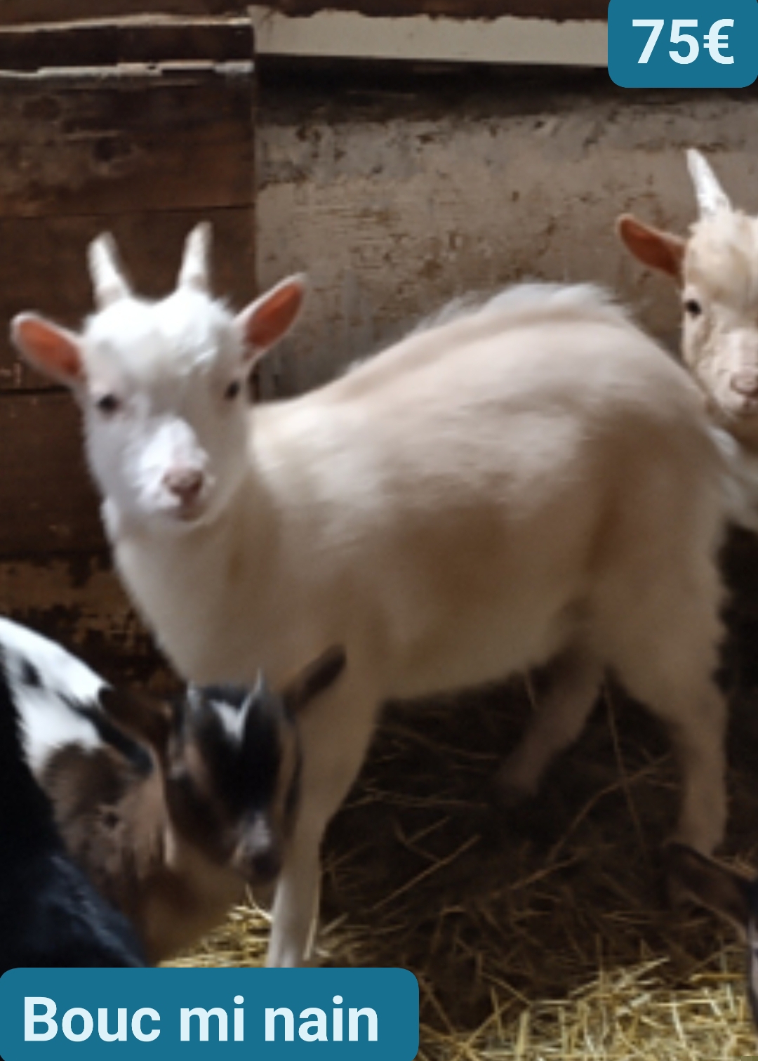 Plusieurs chevrettes et chevreaux disponible. Née chez moi. Plusieurs bouc mi-nains crème/blanc, un noir/blanc et un petit bouc Nain/toys brun/blanc. Chèvrettes, 2 naines/toys, 3 mi-naines. Infos prix sur photos. Merci. 5070 fosses-la-ville (entre Namur et Charleroi)