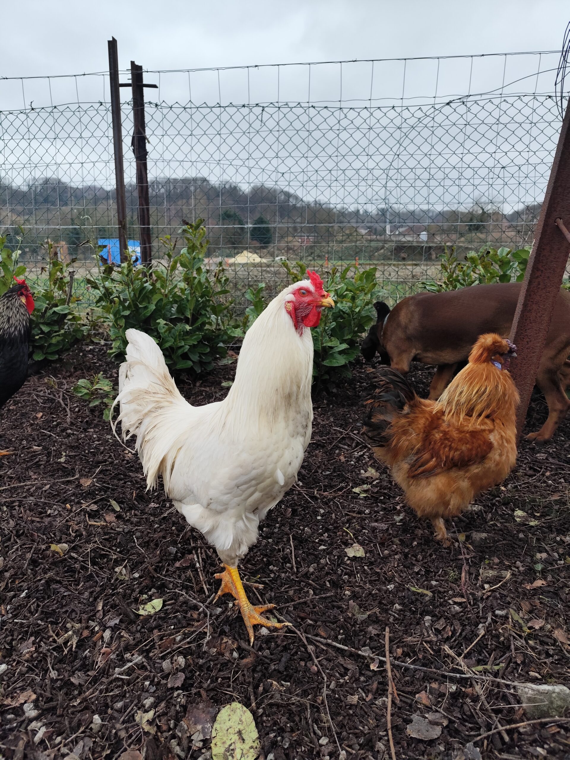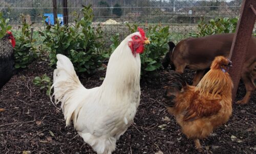 Vend coq (croisé la flèche et le petit croisé bantam de Pékin) ou échange contre œufs fécondés (orpington, bantam de Pékin)