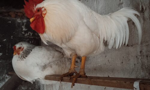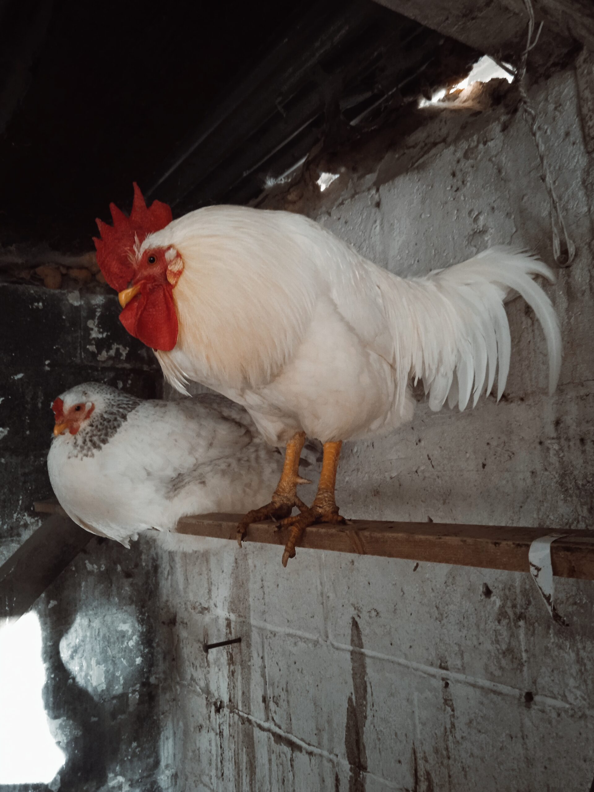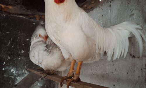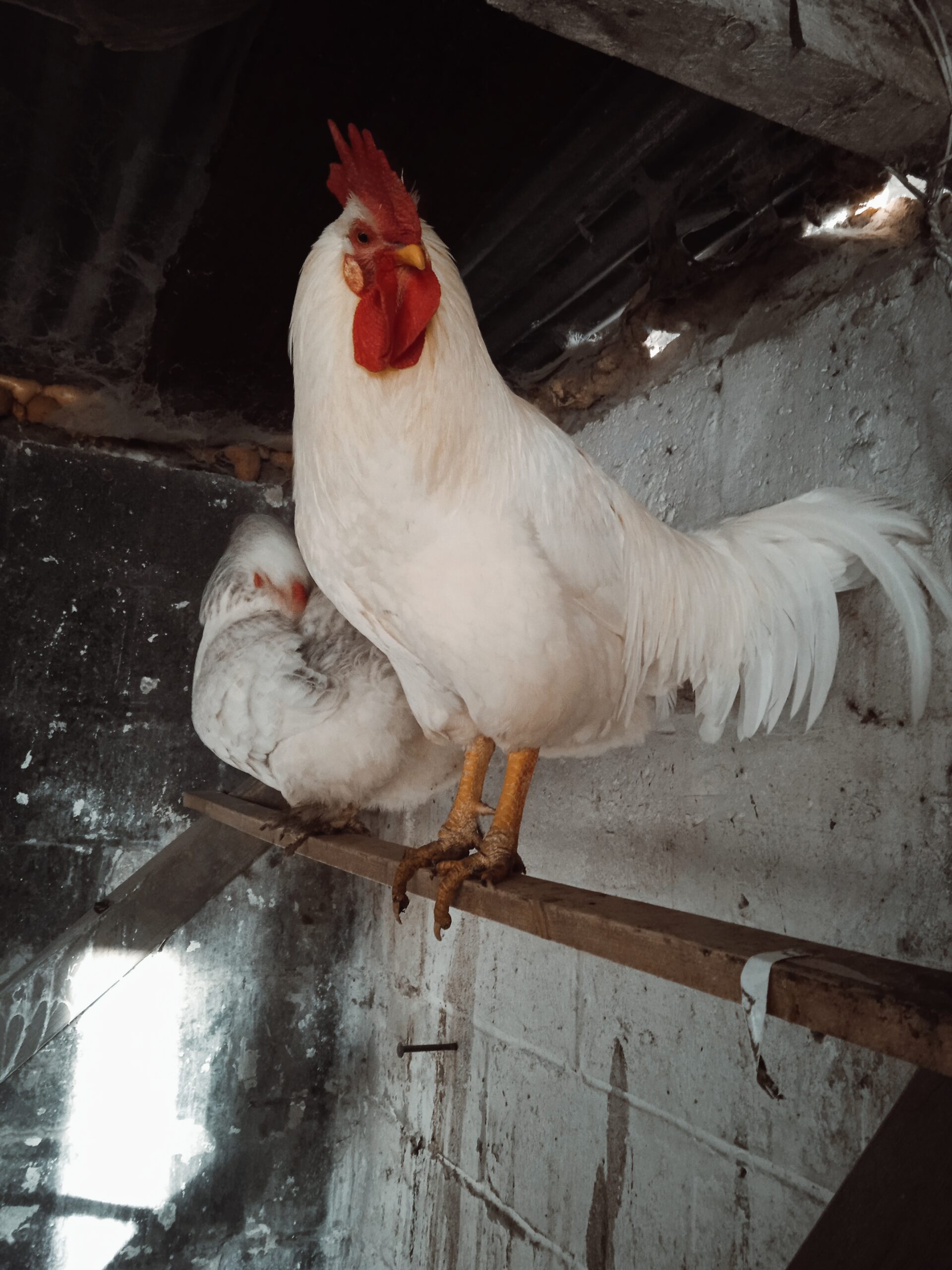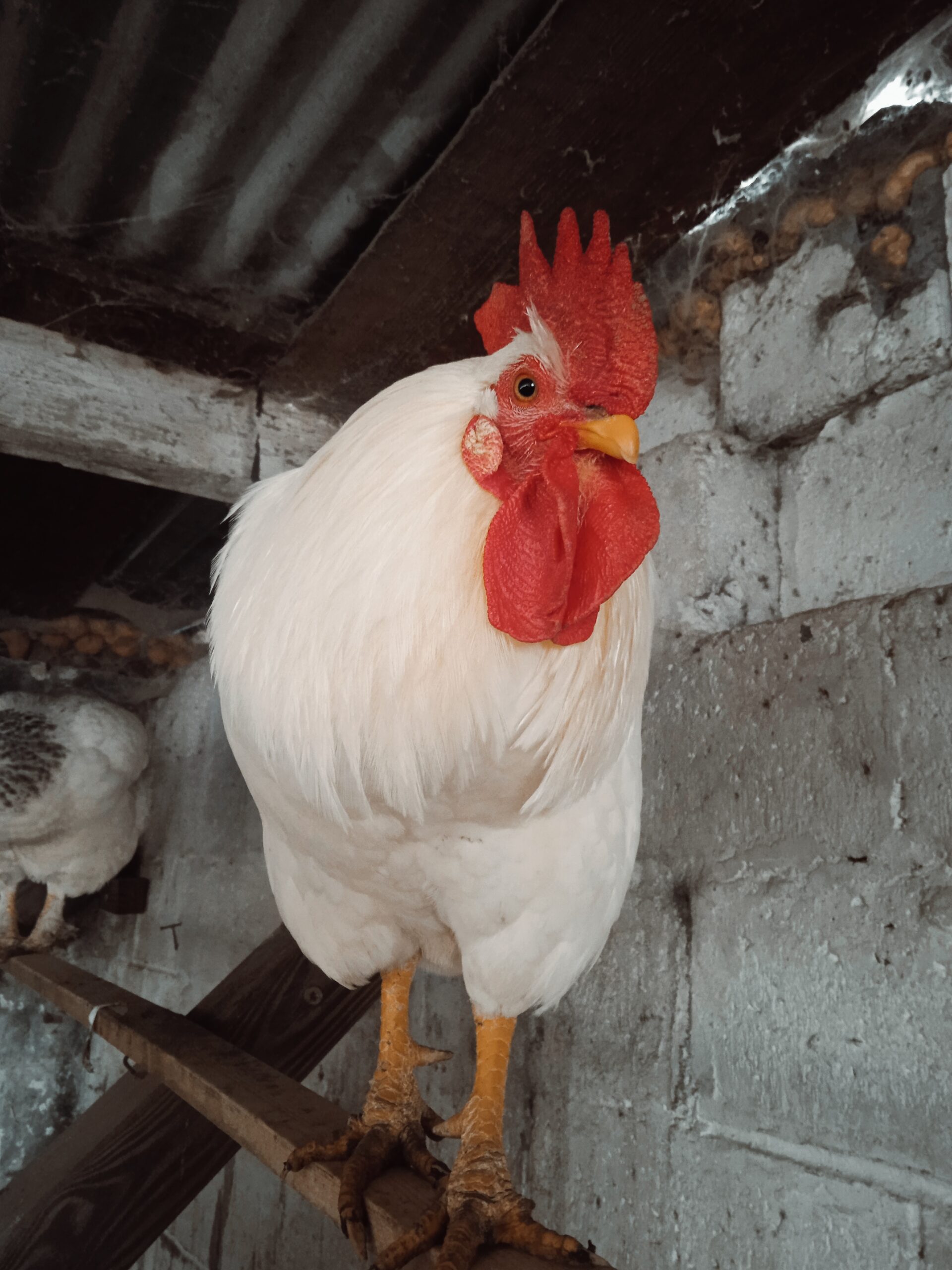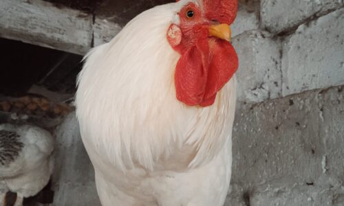 Coq blanc de race Livourne d’Italie, âgé d’un an et demi.