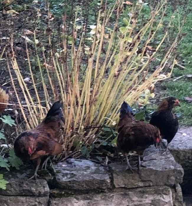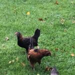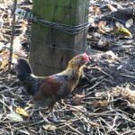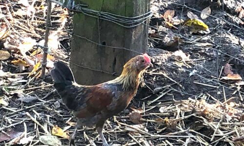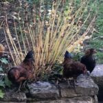 Plusieurs coqs croisés, Brahma nains, barbus d’Anvers et ardennais nains