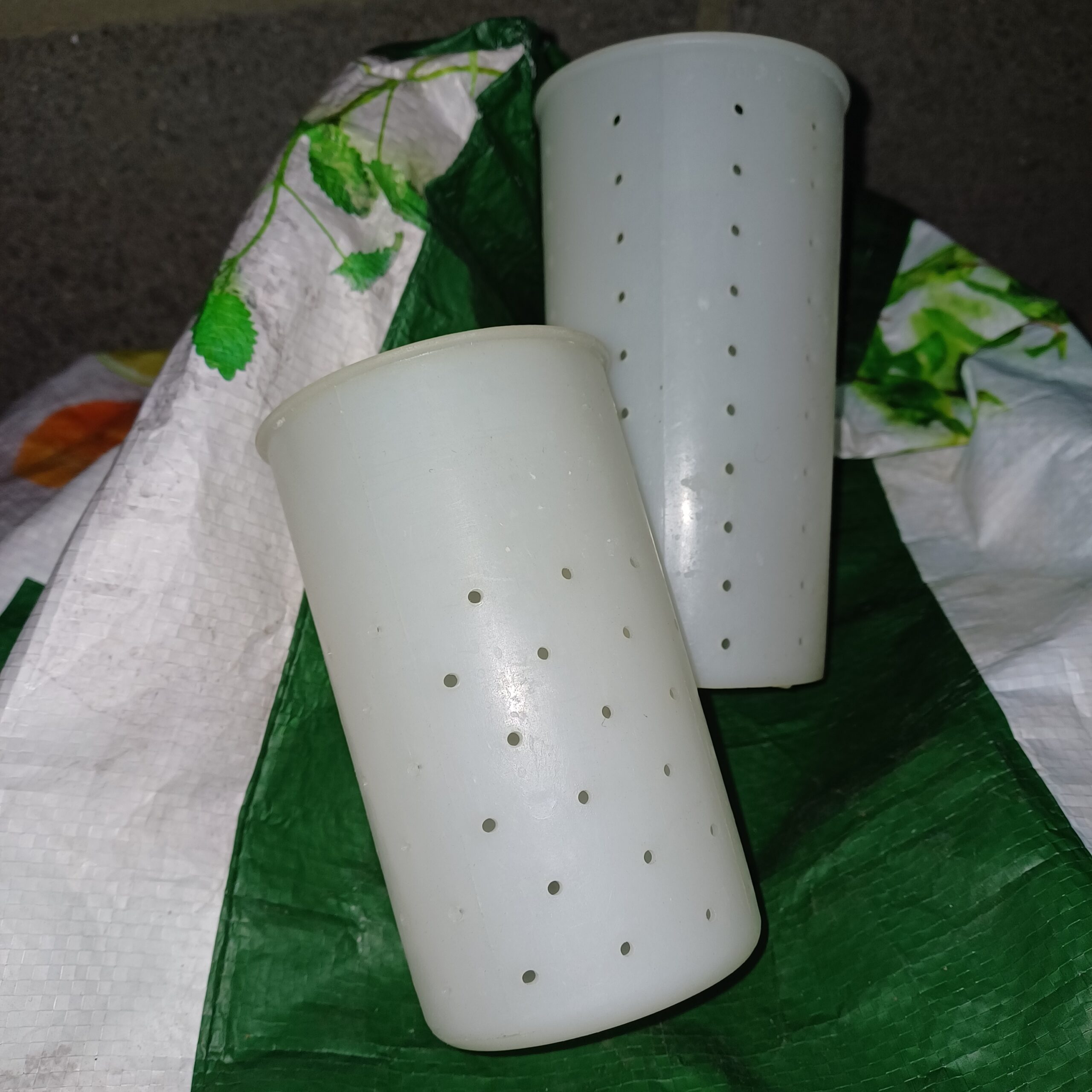faisselle à fromage frais entre 100 et 200gr égoutté. 0,50€ pièce