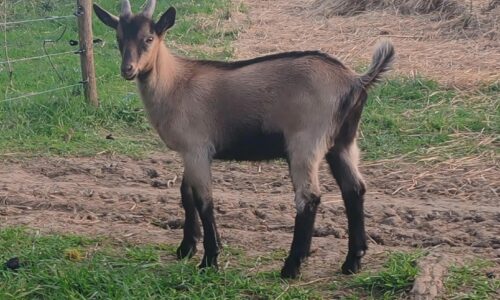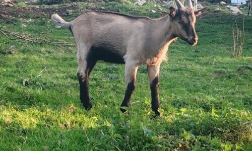 Jeune bouc croisé Saanen à vendre, issu de lignées laitières.
