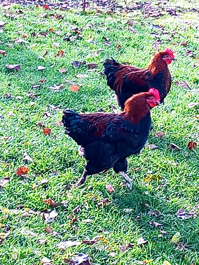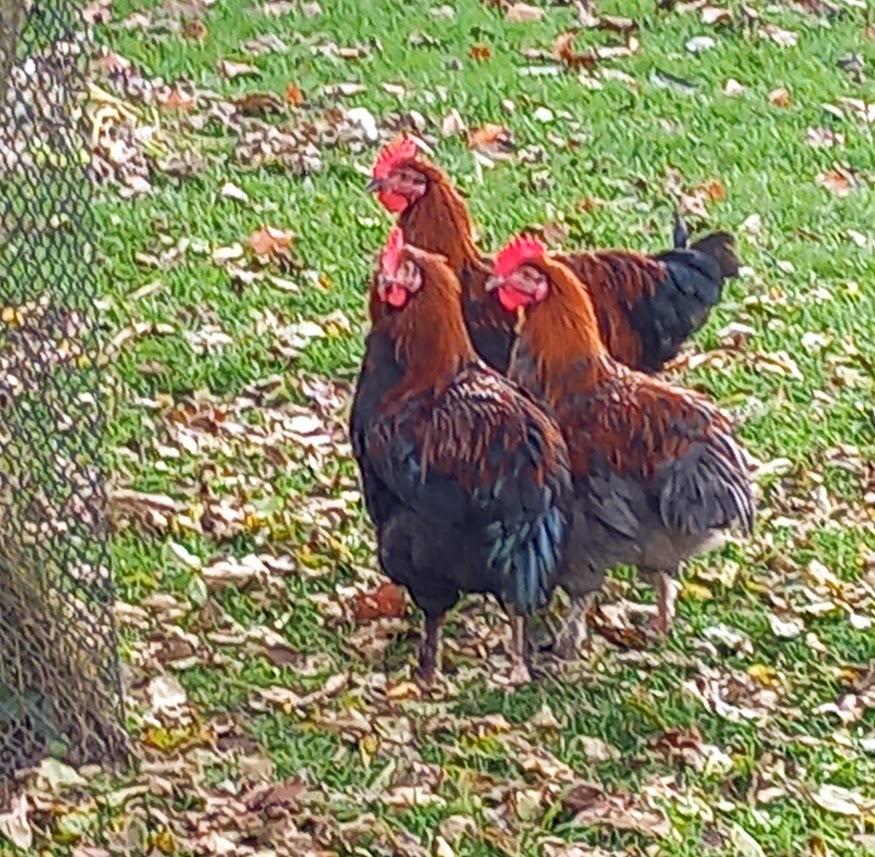 Coqs Marans, couleurs différentes : Noir cuivré ou bleu cuivré, 1 an,