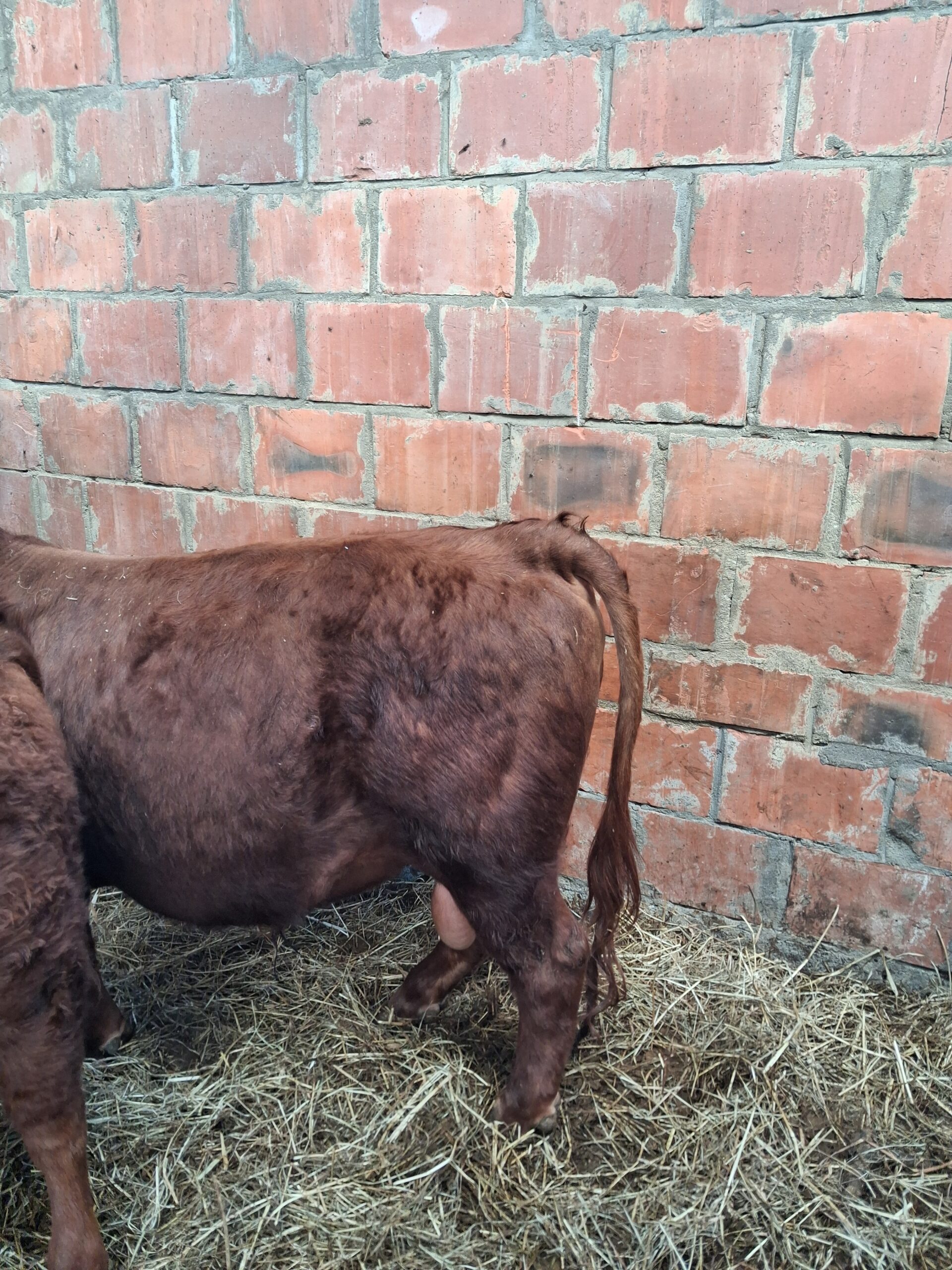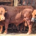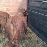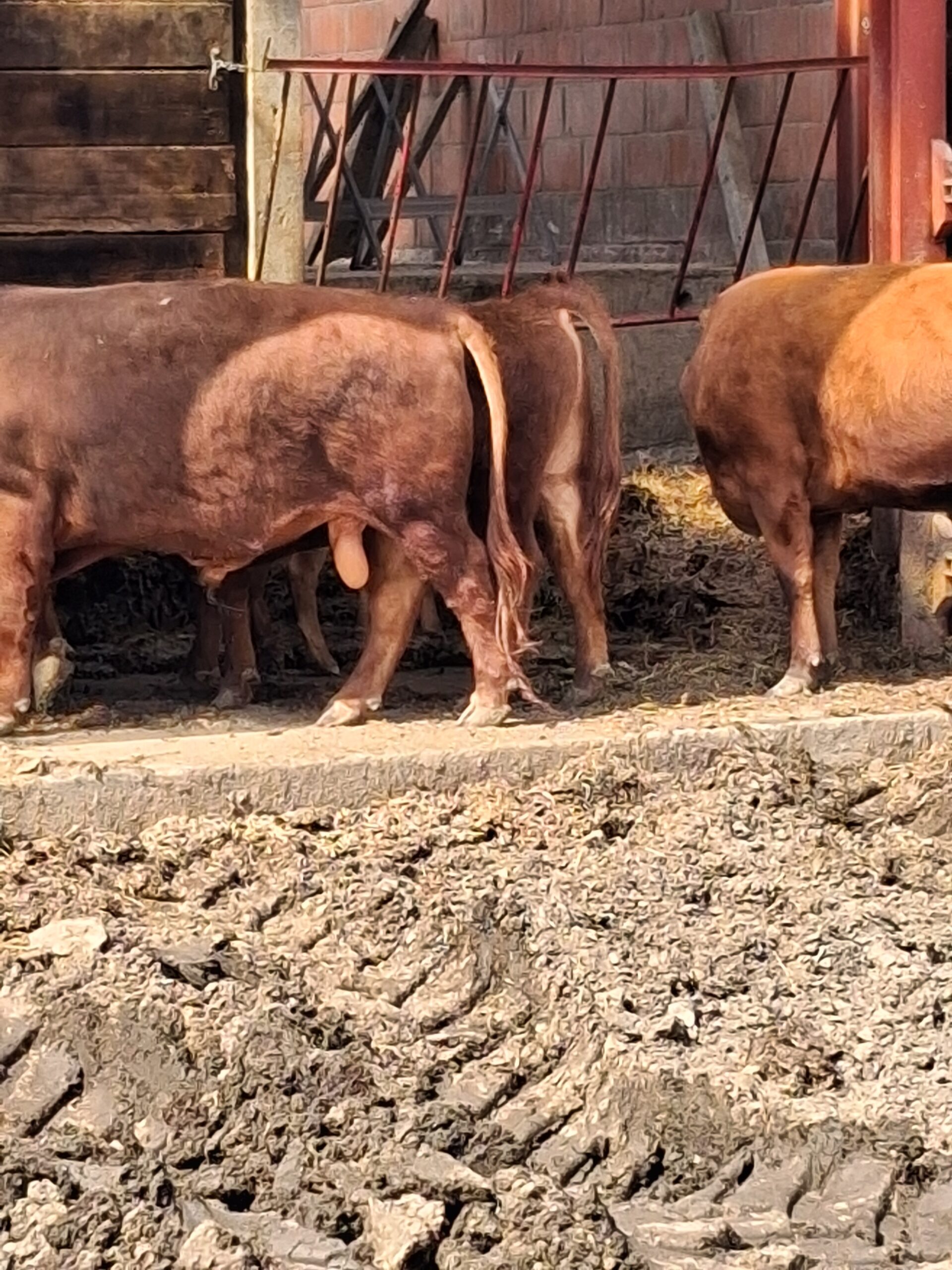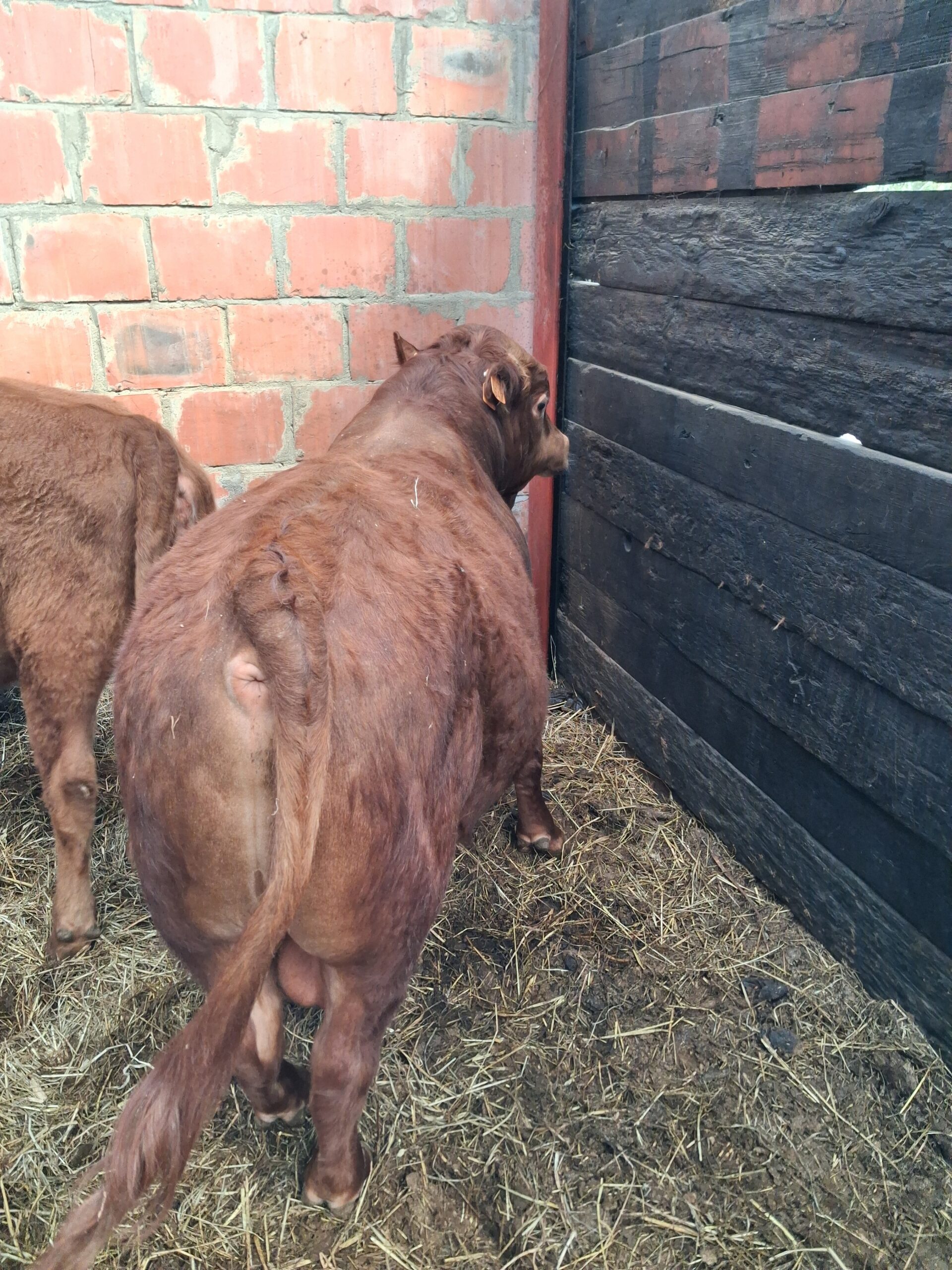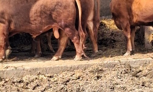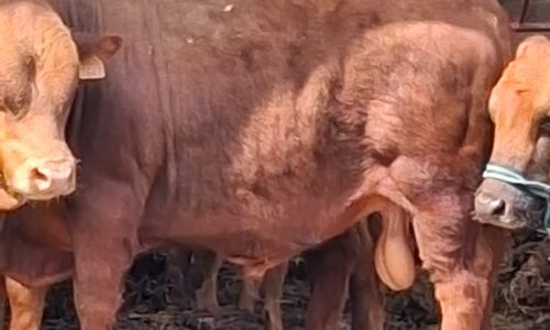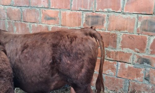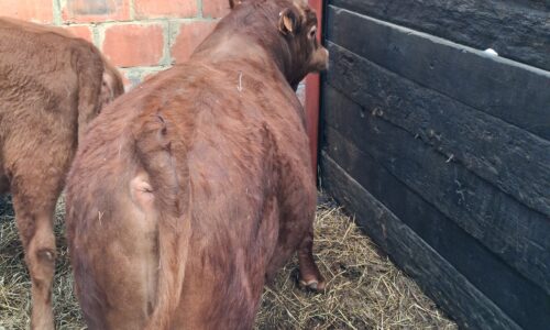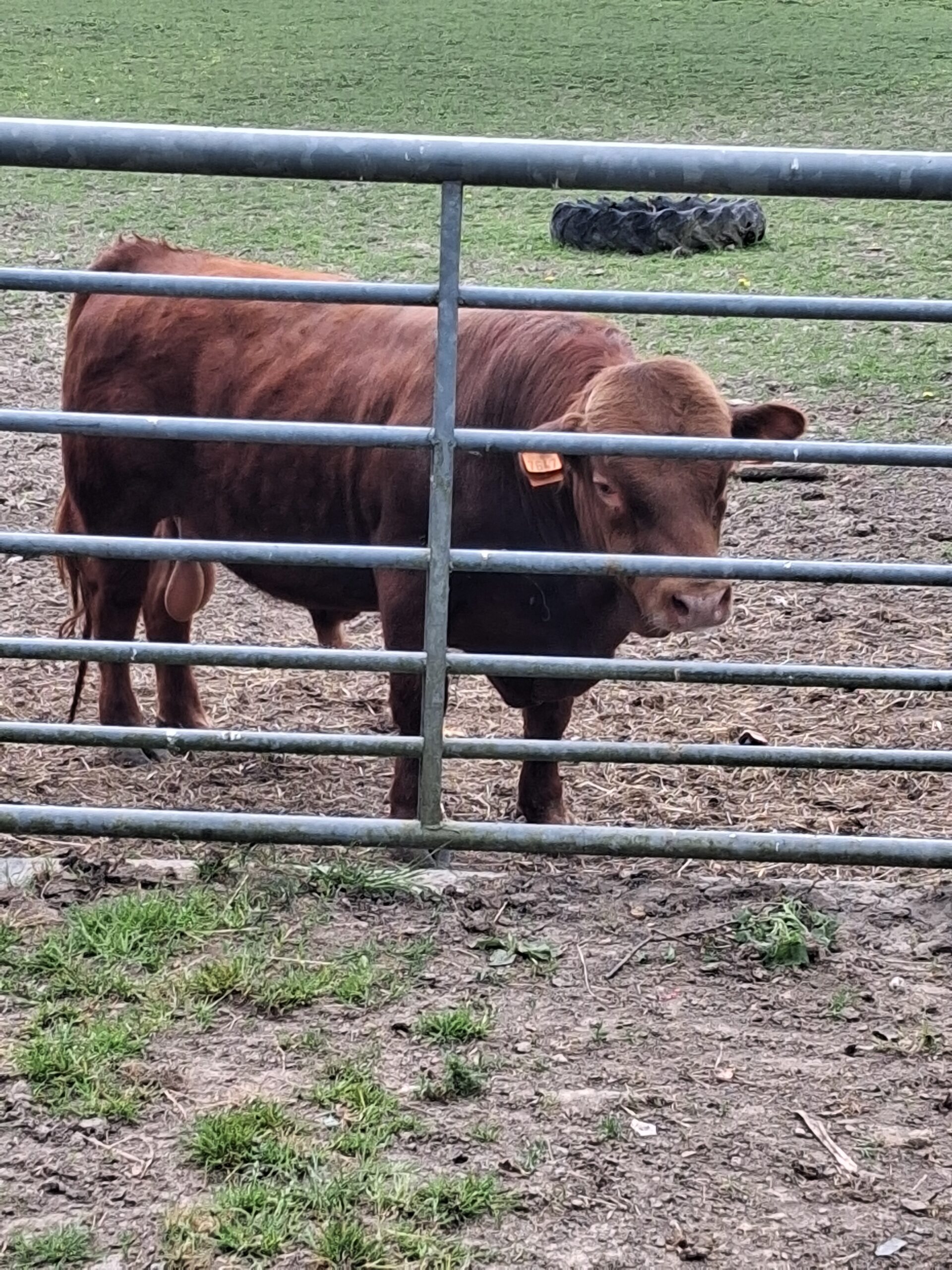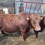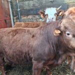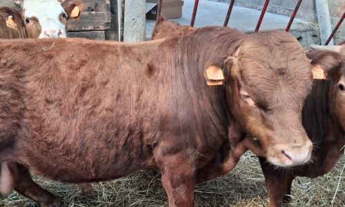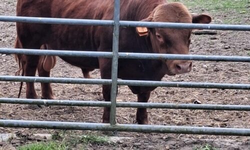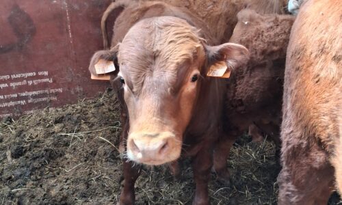 Jeune mini taureau rouge, très brave, calme et bien manipulé, habitué au contact humain et facile à gérer au quotidien.