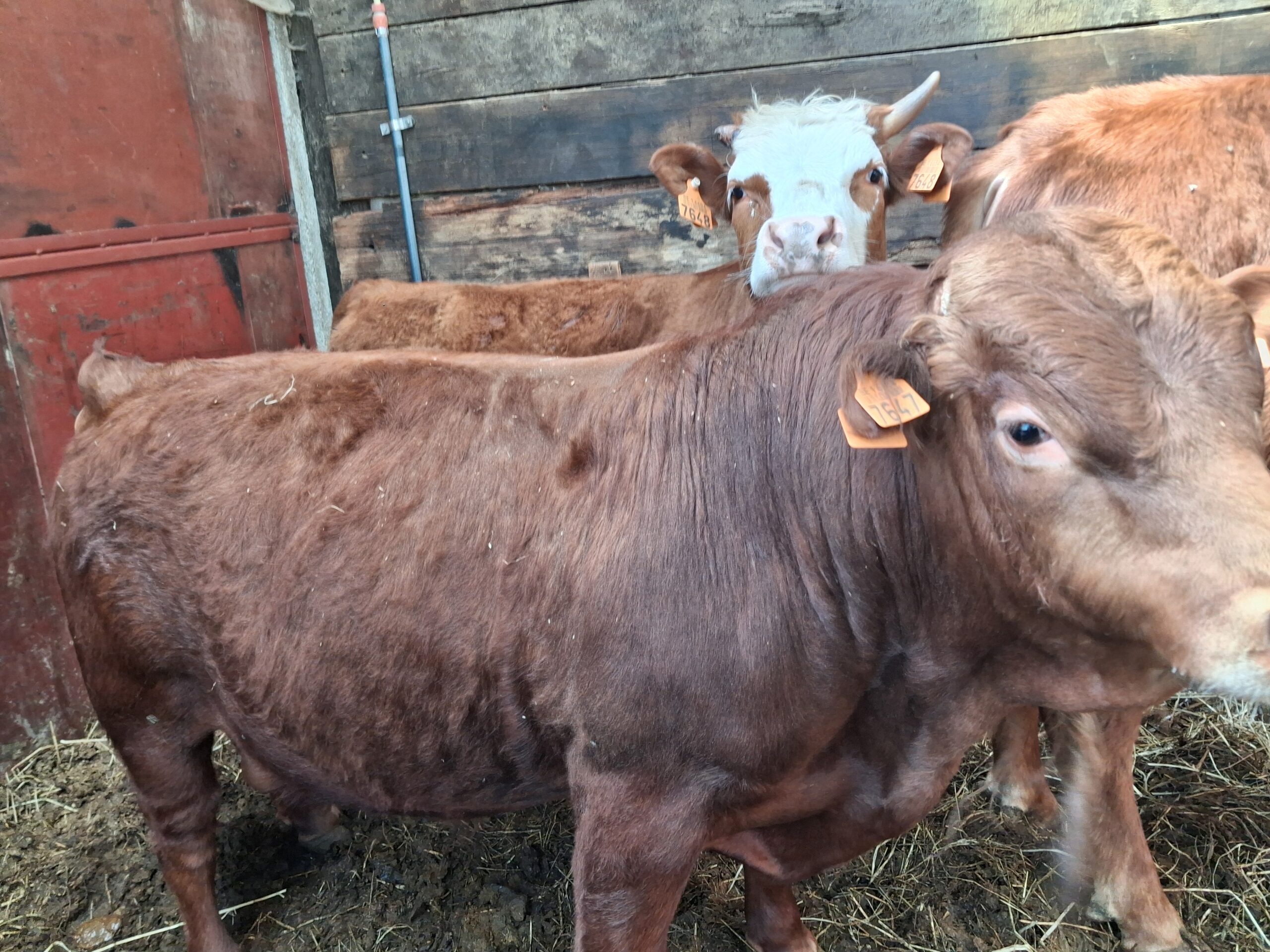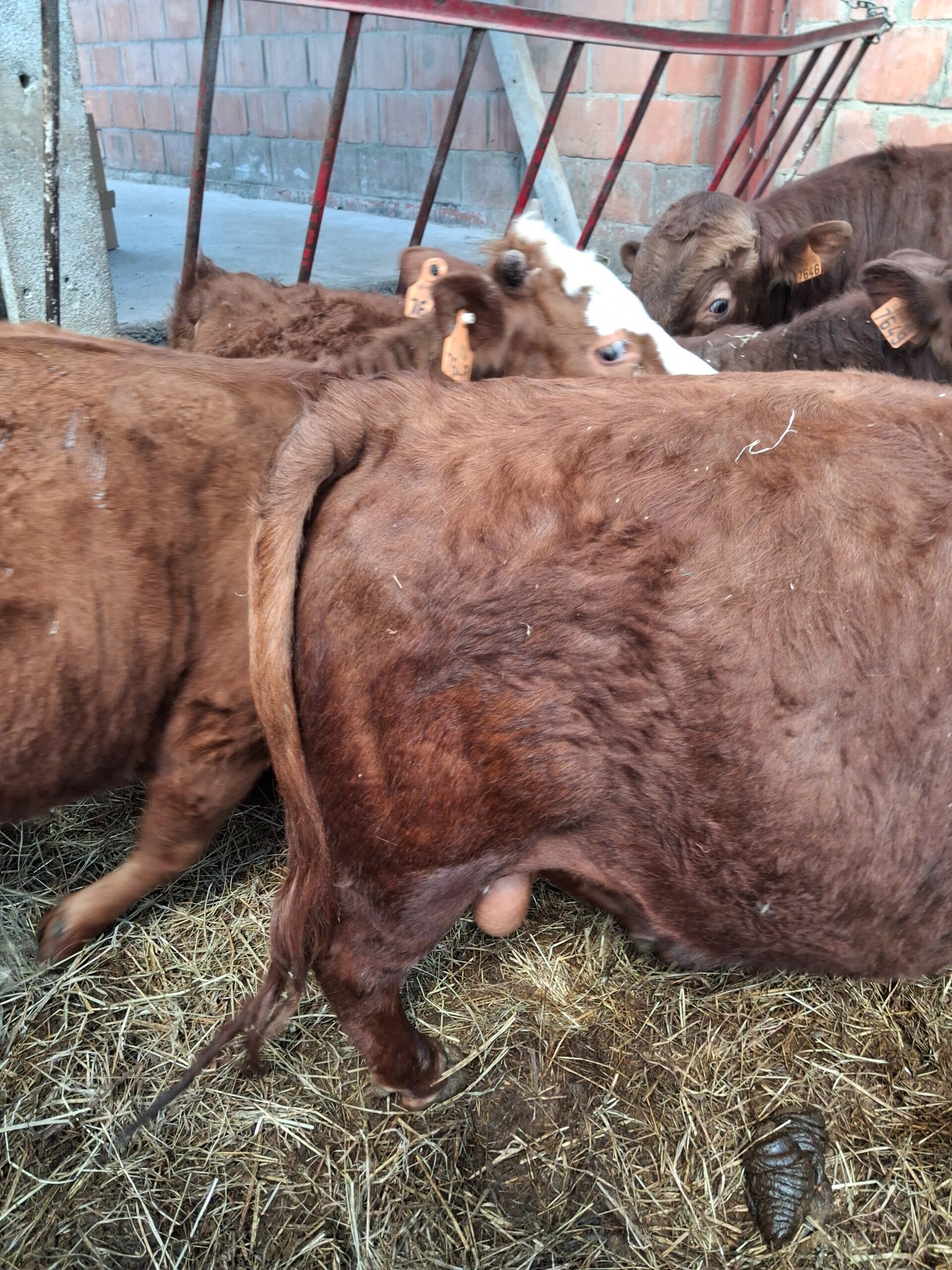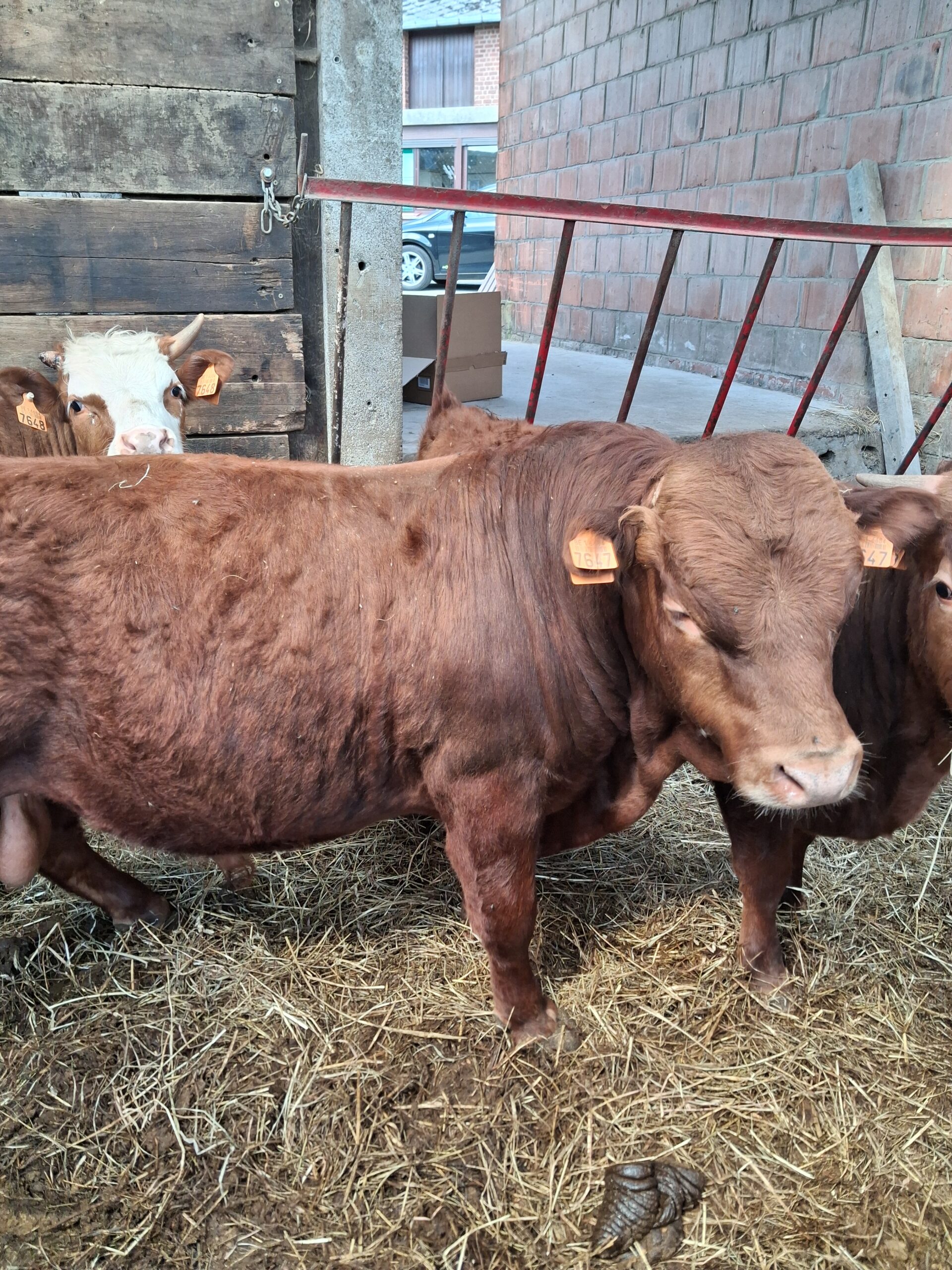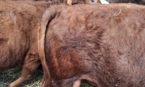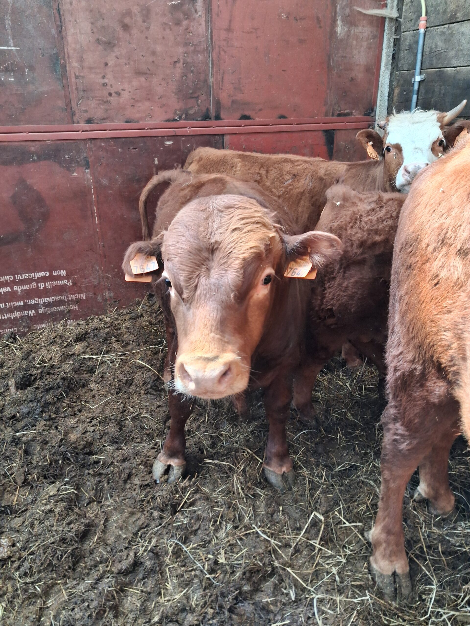 Jeune mini taureau rouge, très brave, calme et bien manipulé, habitué au contact humain et facile à gérer au quotidien.
