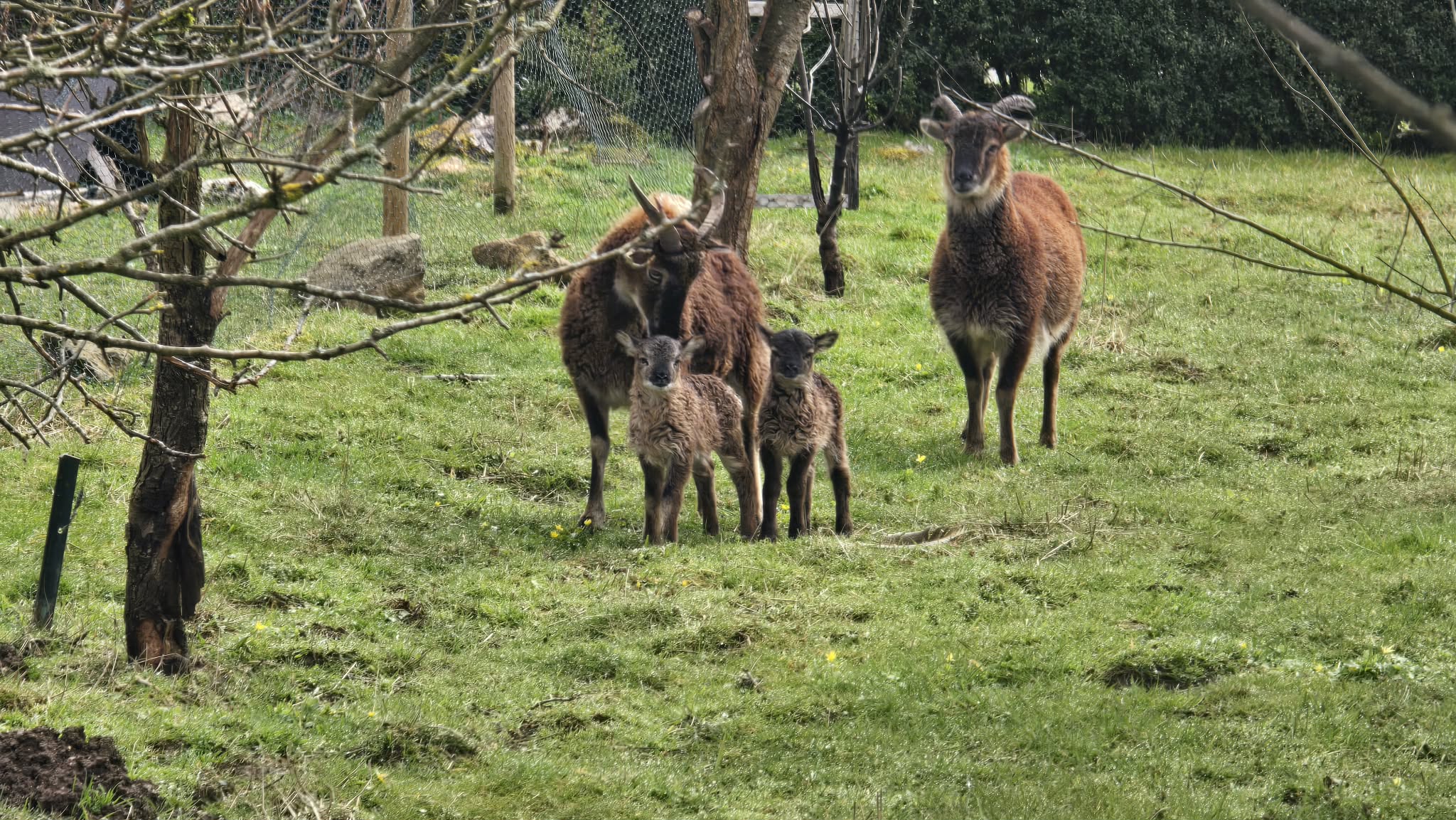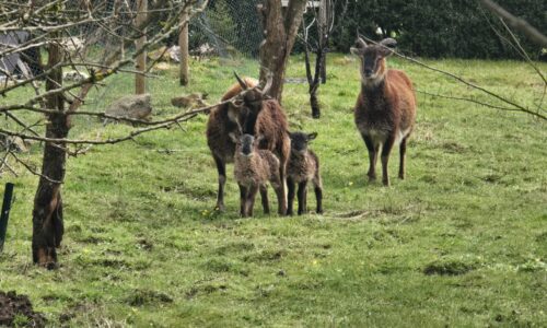 Moutons Soay (1 bélier, 3 femelles et 2 agneaux – 1 femelle à deux agneaux et les deux autres sont peut-être pleines)