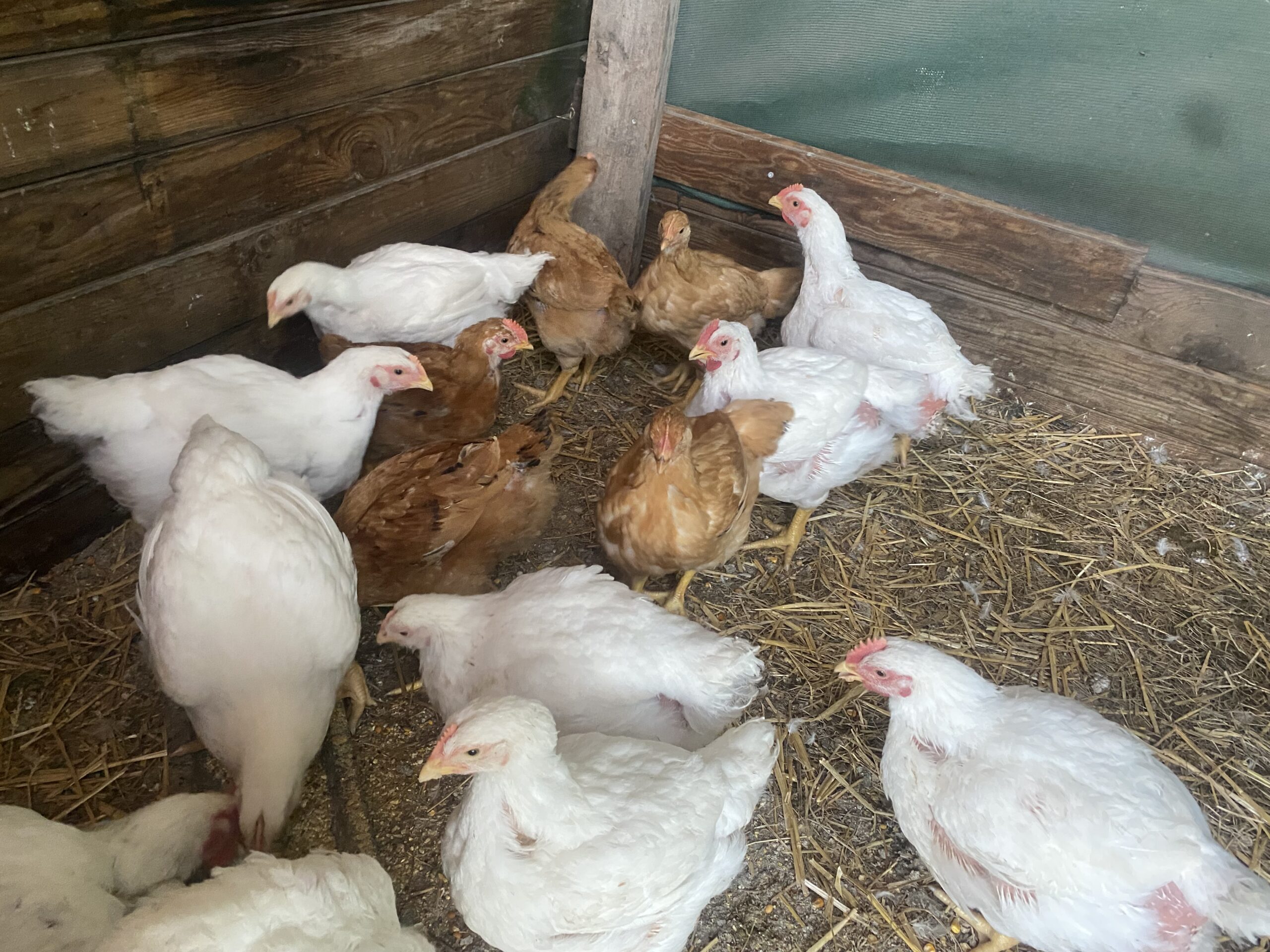 Poussins de chair blanc , brun ( sasso ), poussin poule pondeuse blanche et poule pondeuse brune . C est un petit surplus de production, led poussins ont 5 jours