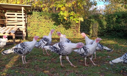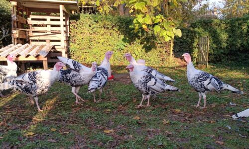 Magnifiques dindons de Ronquières Jaspé mâles nés en juin. Rouge fait, peuvent sortir, vermifugés. Parents visibles.
