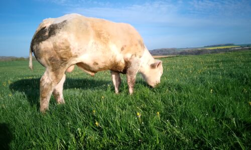 Taureau de saillie BBB inscrit, élevé au pis et à l’herbe, fils de CABOTIN * CACHEMIR * OCCIDENT * ADAJIO, âgé de 12 mois, taille 120cm (+2).