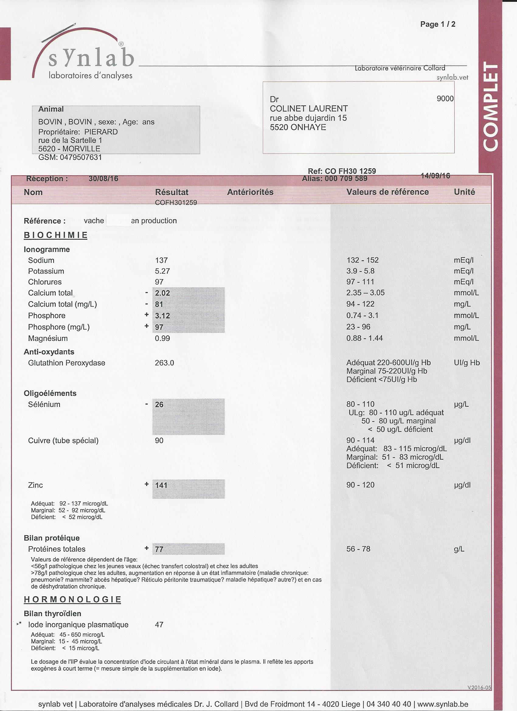Résultat kit vente du taureaux ci-joint, indemne Mycoplasme, Fièvre Q, IBR, Leptospirose, Salmonellose