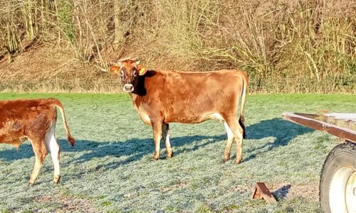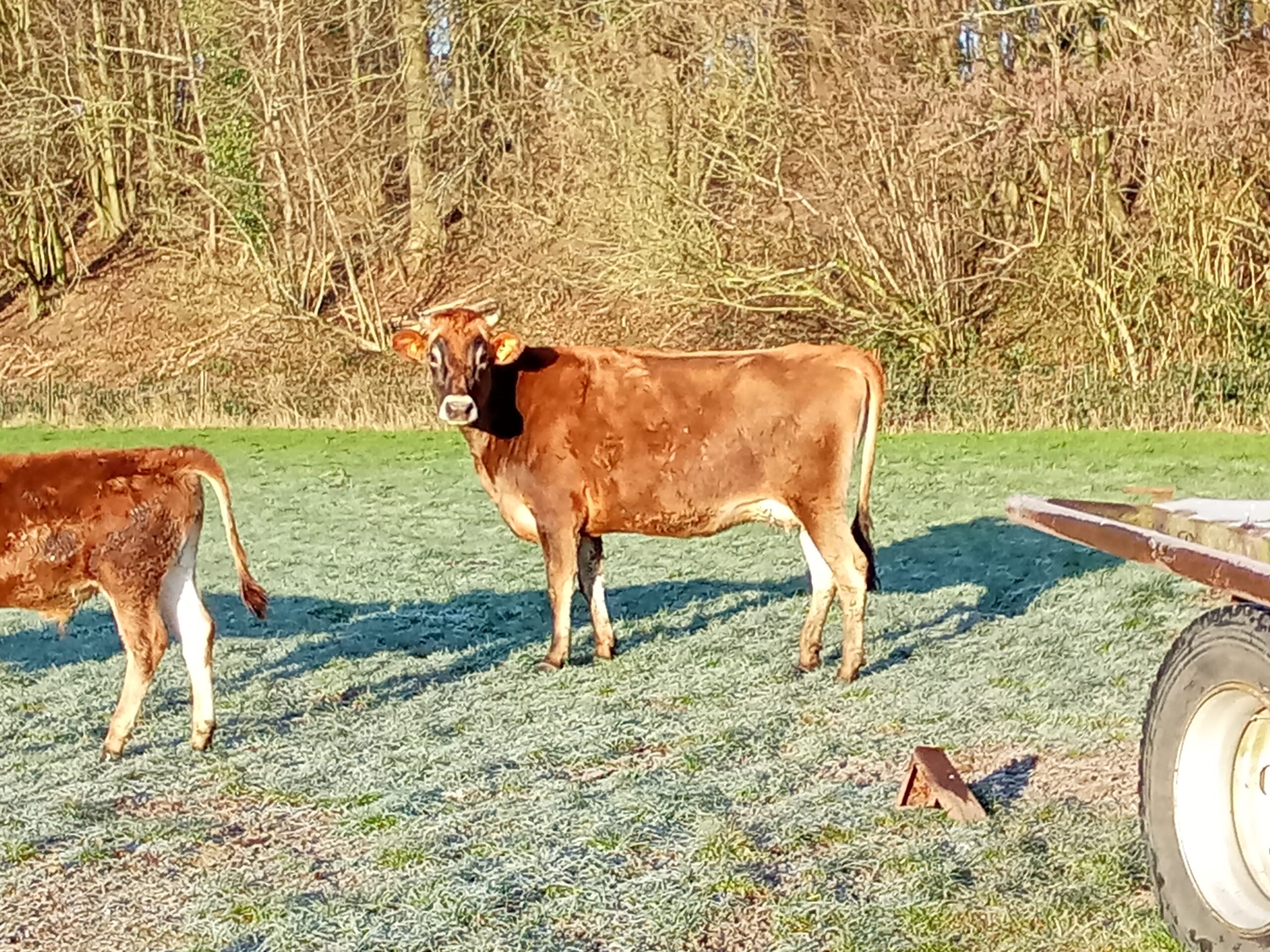 Vache Jersey ( de août 2023), pleine de son 2 ème veau, du 16/09 avec une dose sexée femelle (taureau : Dalin ).
