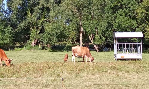 Vache Jersey ( de août 2023), pleine de son 2 ème veau, du 16/09 avec une dose sexée femelle (taureau : Dalin ).