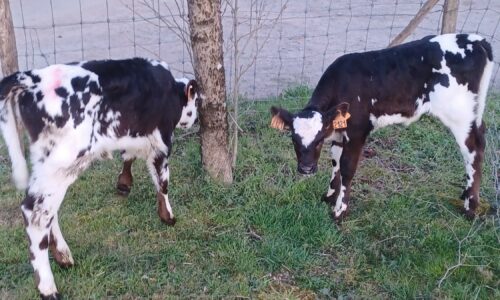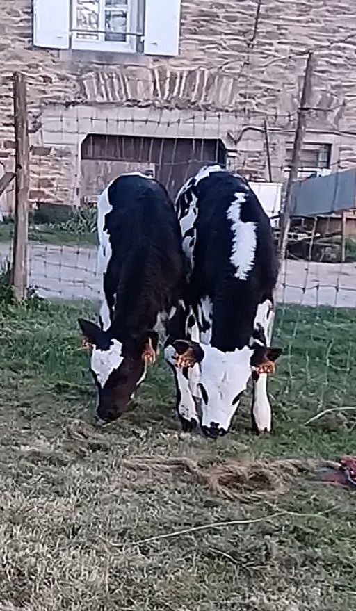 Une est une croisée PH/Normande (mère prim holstein et père normand). L’autre est une 3/4 holstein (mère croisée PH/Normande et père prim holstein).