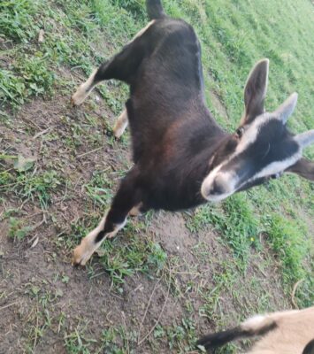 Jeune bouc croisé Saanen issu de lignées laitières – 45 €