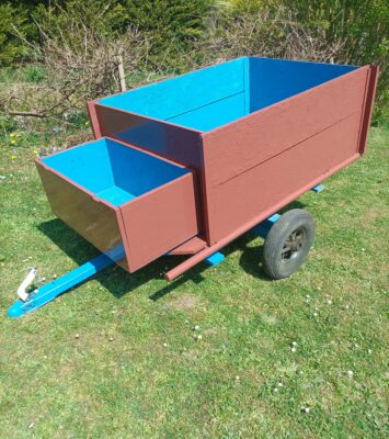 Une belle petite remorque de jardin qui convient très bien pour le ramassage de l’herbe coupée, de bois...