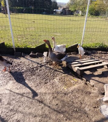 2 oies à donner. Elles ont un an. Peureuses mais pas agressives