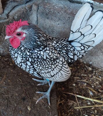 Coq sebright argenté