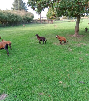 Agnelle noire de 6 mois disponible, visible au centre de la photo Bouclée et vermifugée, vaccinée contre la langue...